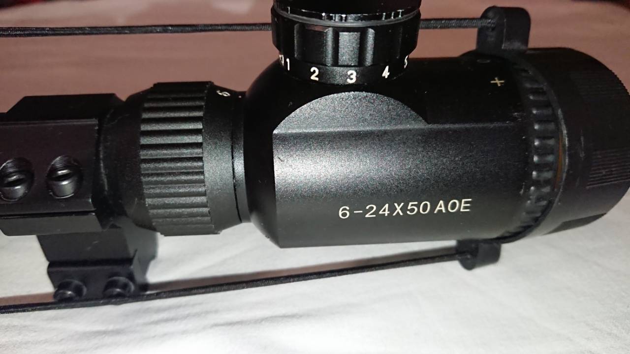 16). Прицел не известного мне происхождения, 6-24x50 AOE, с кольцами (ласта) высота 21мм,=90 руб.