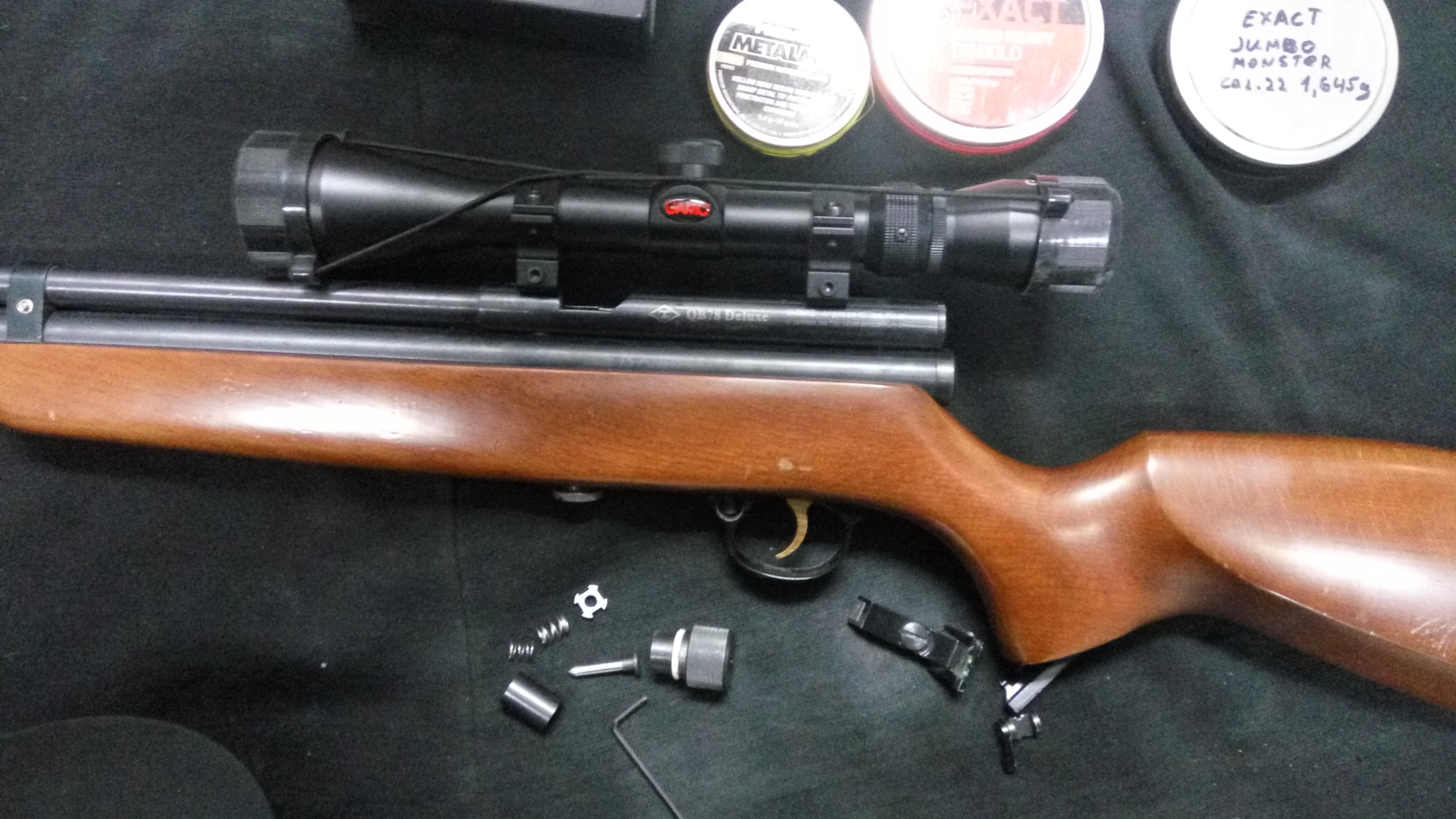 Продам винтовку qb-78, папа (5,5), в комплекте сама винтовка, оптический прицел gamo 3-9 x 40, хронограф, удлинитель резервуара с манометром под быстросъём с дополнительной восьмёркой, насос ВД хатсан с быстросъёмом, около 700 пуль, мишени, запасные манжеты к винтовке и насосу, родная пробка и игла для баллонов СО2, родная прицельная планка и мушка. Был сделан апгрейд (полировка спускового механизма,устранён люфт; расточен перепуск; установлен капролоновый клапан; облегчён ударник; фаска ствола).900 рублей за всё что имеется, по отдельности: винтовка без оптического прицела + насос+резик = 800 рублей (без удлинителя резервуара 760 рублей ( раздельно насос и винтовка не продаётся), хронограф - 60 рублей, оптический прицел - 45 рублей, пули: jsb(1.175 грамма около 300 штук) - 15рублей, jsb(1.645 грамм около 150 штук) - 9 рубей, jsb (экспансивные с металлическим сердечником 180-200 штук) - 10 рублей. (ЗИП(всякие запасные манжеты резинки, мишени, шланги) - бесплатно в нагрузку с винтовкой и насосом. В ПЕРВУЮ ОЧЕРЕДЬ ПРОДАЁТСЯ ВИНТОВКА С НАСОСОМ В ПАРЕ, ПОКА ВИНТОВКА С НАСОСОМ НЕ ПРОДАНА, ОТДЕЛЬНО НИЧЕГО НЕ ПРОДАЁТСЯ.Тел: +375-25-697-97-83. Рассмотрю варианты обмена на что нибудь нужное(например инструмент, стройматериалы и т.д)