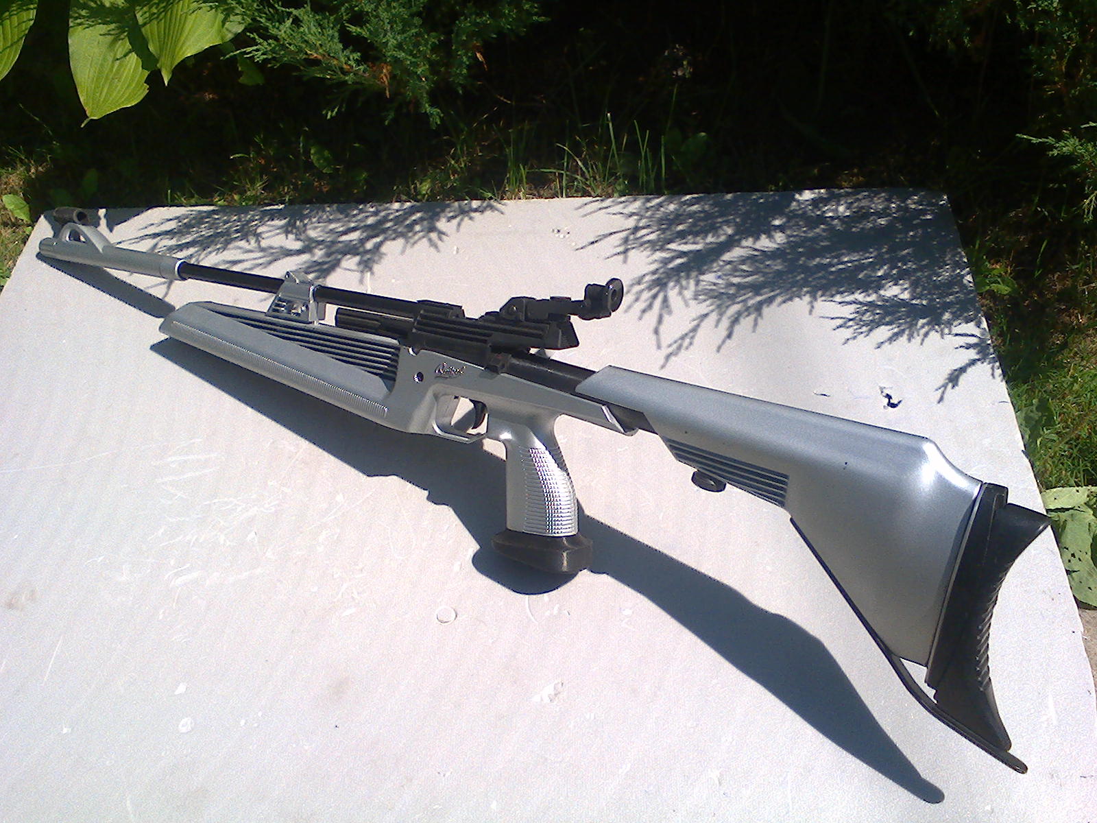 Ремингтон саммит,если продам что либо из вышестоящего то с продажи сниму,установлю гп и буду доволен как слон...ну а пока о нём.с ложа снят заводской говнолак,пропитано(уже даже не помню чем)т.к. с завода открытые прицельные не предусмотрены установлен целик от мр 512 и самодельная мушка на основе родного утяжелителя ствола и пластика от мр60,внутри манжета вадо и родная пружинка которая конечно подсела,но на удлинённой направляющей от того же иж38 всё ещё разгоняет люман фт0.55 до ..25м,выточены новые тарелочки из капролона,по точности вопросов не возникало,куда целился туда и попадал,за него хотел бы 350р