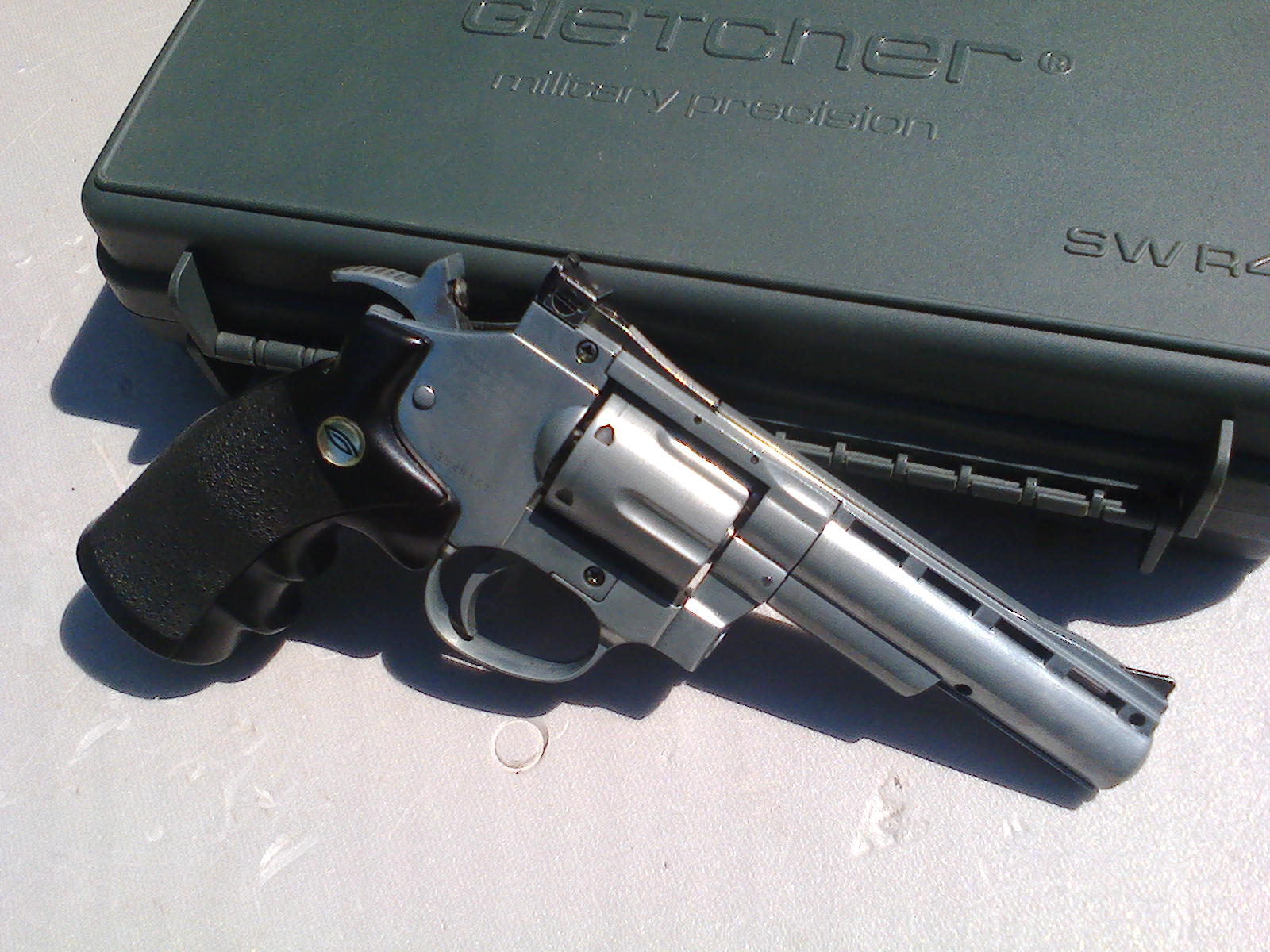 Глетчер СВ р4,ствол ЛВ,снята заводская краска,был отполирован,сейчас блеск немного пропал но в целом смотрится не плохо,плоховато держится пластик рукоятки (двухсторонний скотч выручает) ,удалена проволока-пружина перед клапаном а ударник на курке увеличен ,всё вроде работает,газ нигде не травит.за него хотелось бы рублей этак 150