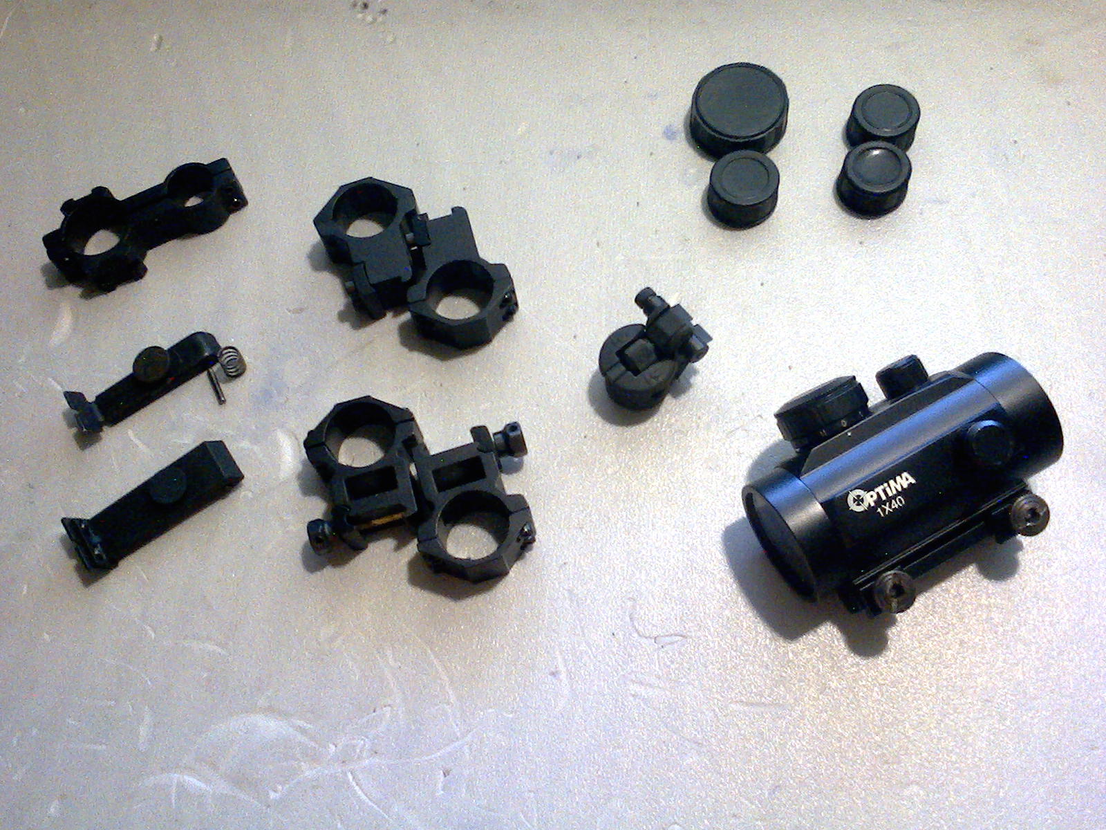 Немного мелочи.целики иж38,мр60,мр53.Кольца 25ки на ласту и на вивер(винт на крепление заменён).Калик работает,но или лазер или зеркало по ходу сбито,по сему может кому под восстановление или на запчасти цену предлагайте сами