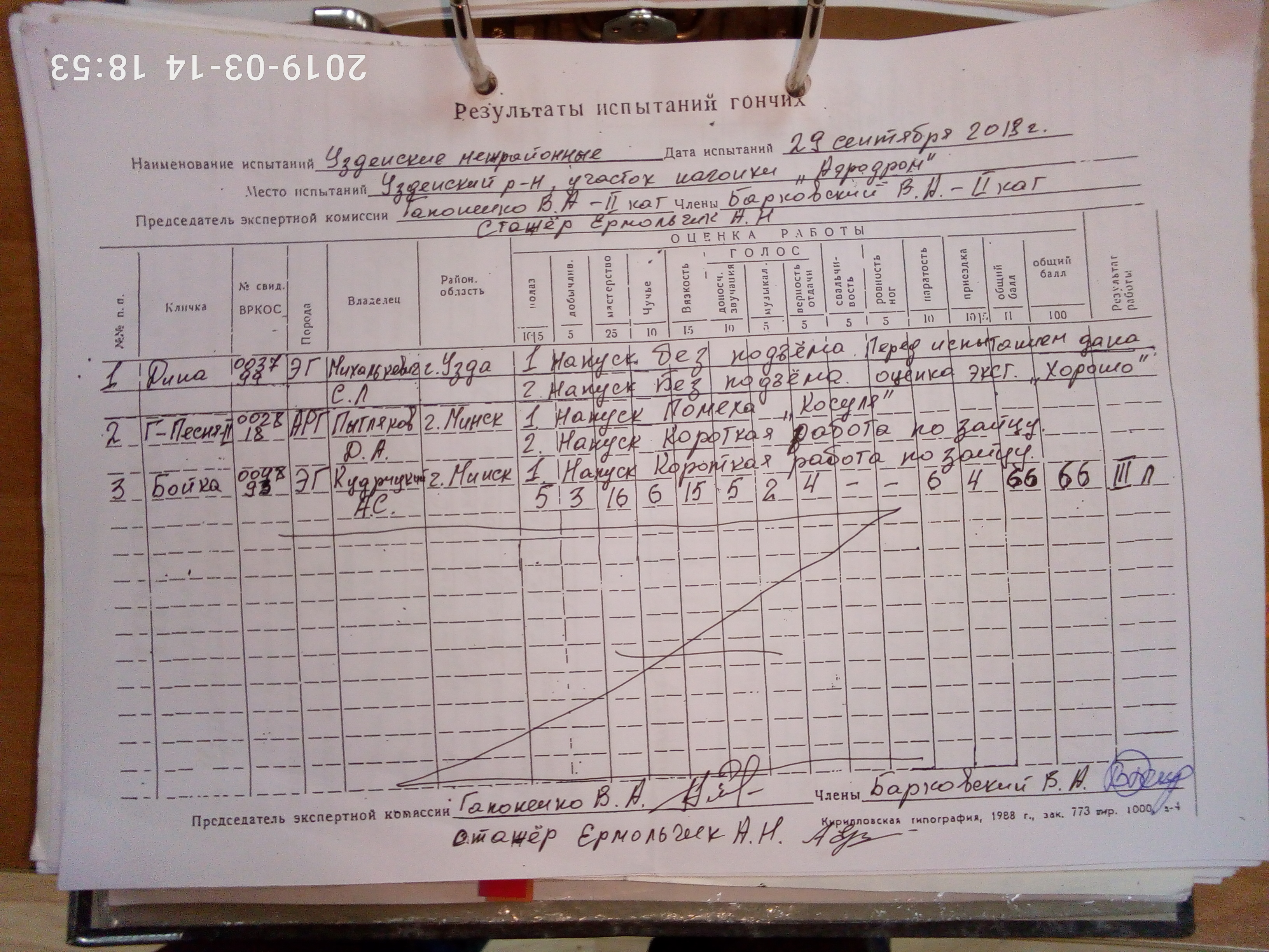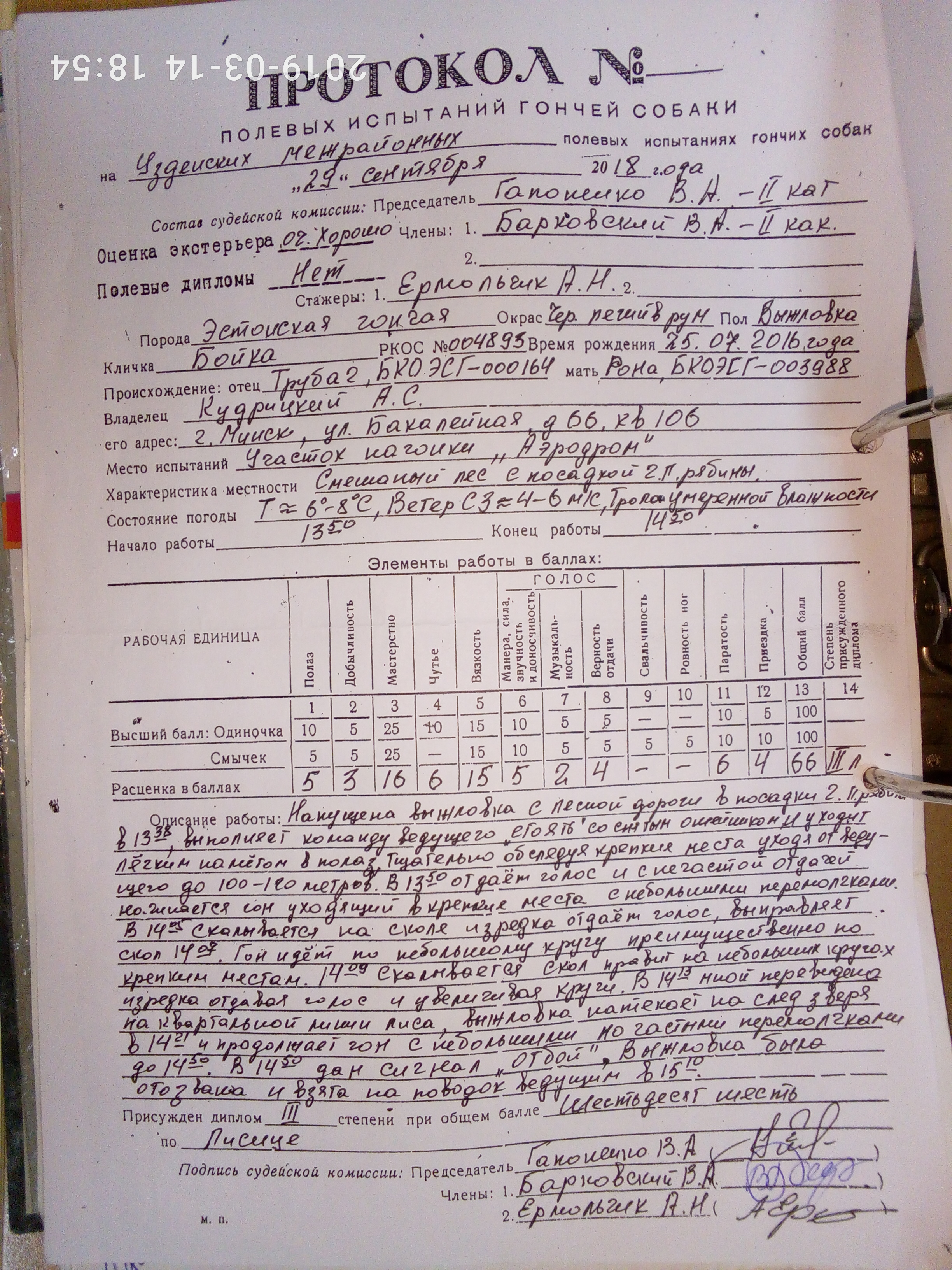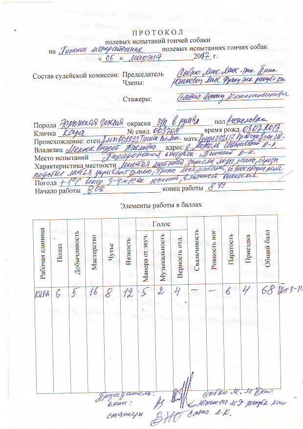 БКО ЭСГ- 003497 Ника, вл. Евграфов Р.И. оценка отл