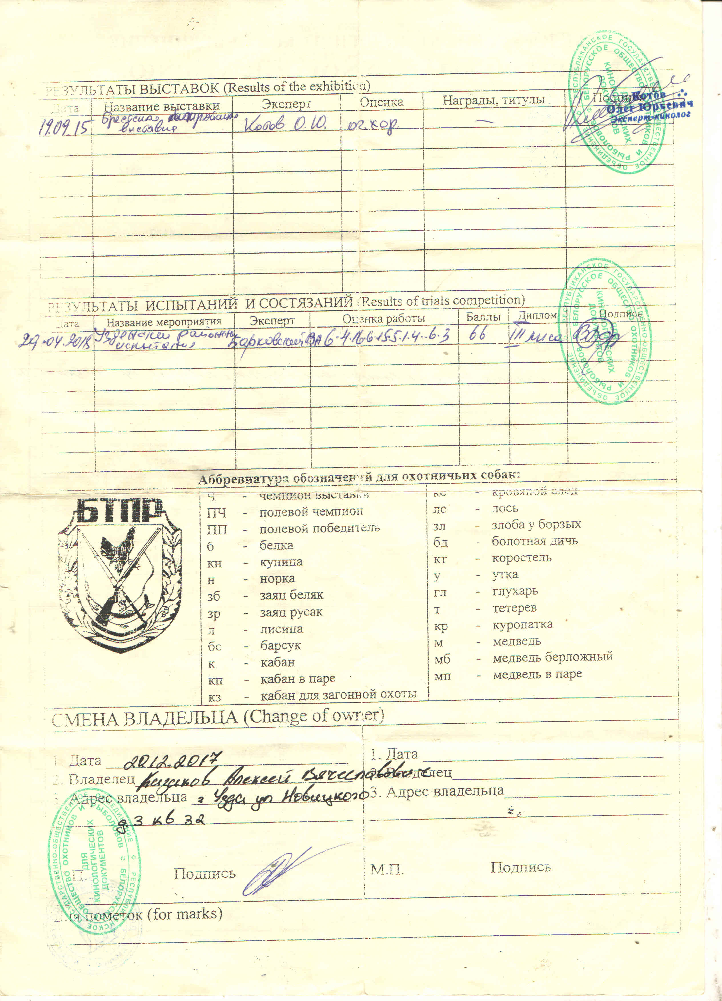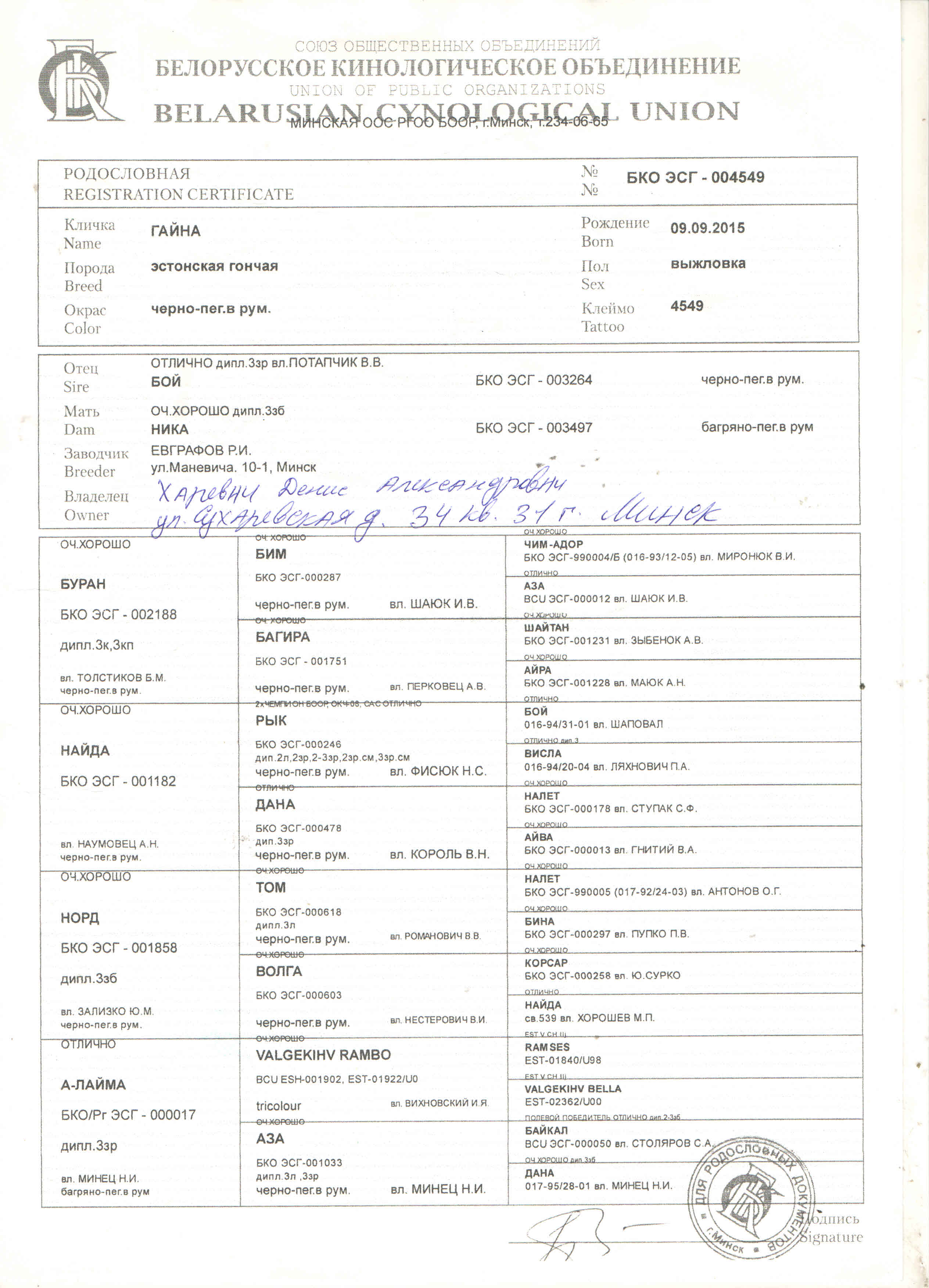 Есть дипломированный потомок БКО ЭСГ-004549 Гайна, вл. Харевич Д.А.
