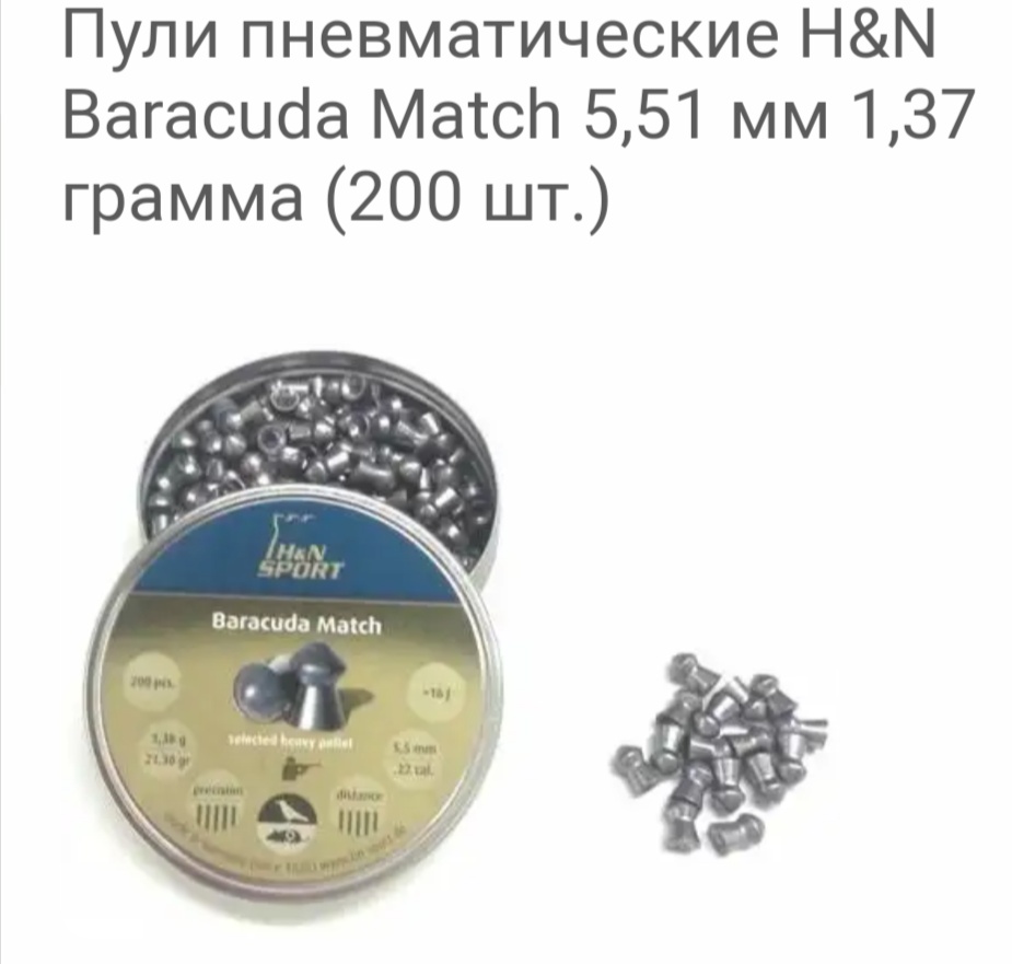 Продам две запечатанные банки пуль H&N BARACUDA MATCH 5.5mm 1.37гр по 25руб за банку.