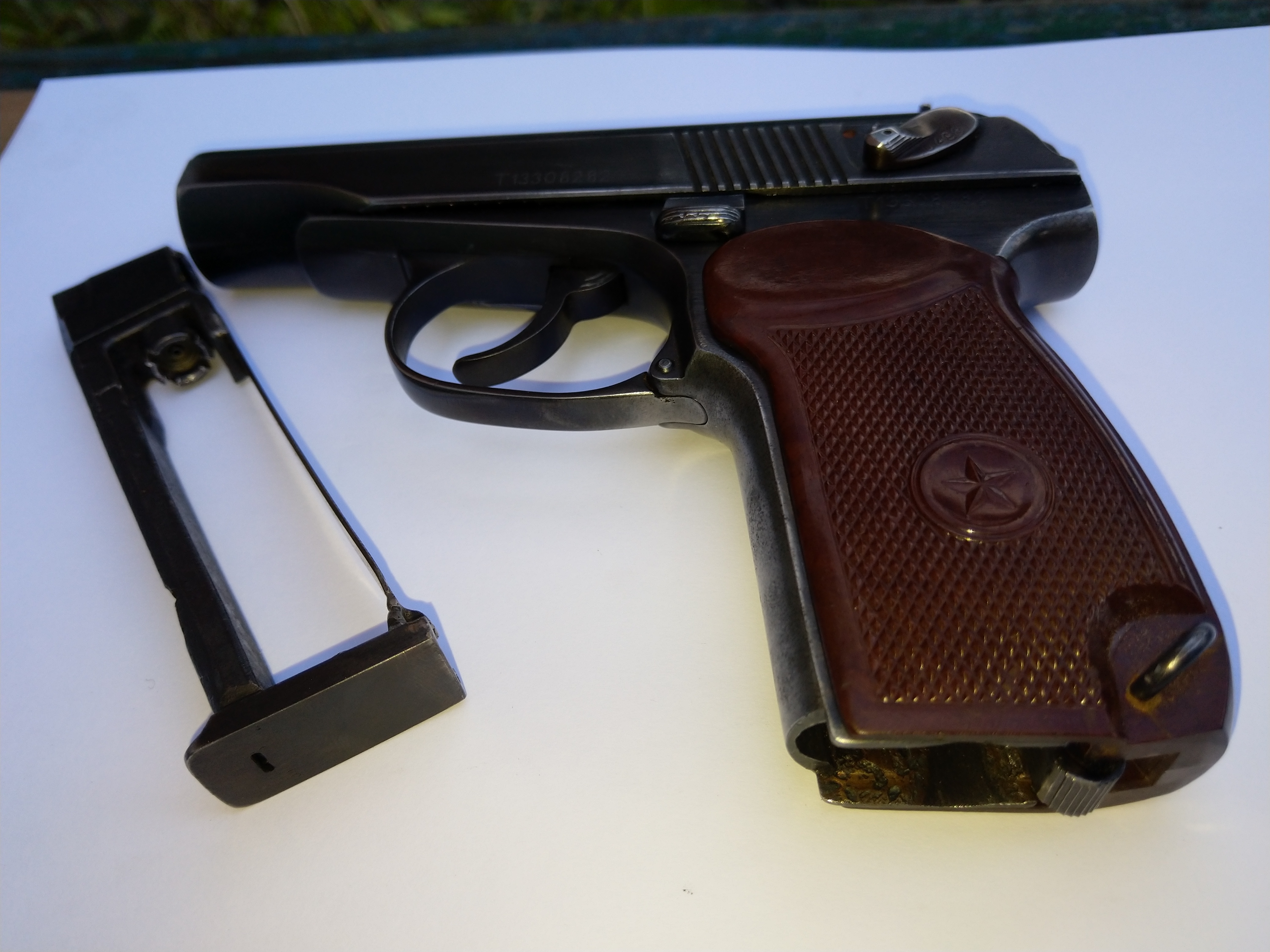 автор забыл указать что перемычки рукояти восстановлены, переделана планка на магазине, бакелитовая рукоятка, красный имитатор выбрасывателя и красный зип..