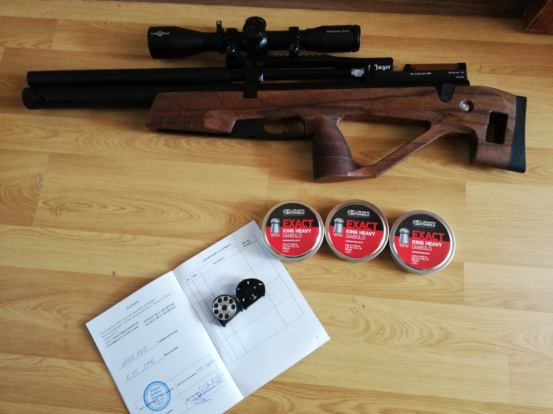 Продам егерь комплектом!! 2 месяца бу. Состояние новой винтовки настрел 1 банка пуль. Три года гарантии Российской плюс год РБ Точность паразительная, согласен на любые проверки В комплект входит :1)Винт,2) прицел v.o. 10*44 постоянник, 3)два барабана, один из корых от Печета плюс лоток для одиночной стрельбы 4)Дорогой чехол 5)три банки пуль jsb 6)серьга для взвода, 6)новый баллон с заправочной станцией 7)каробка и гарантийный талон, комплект резинок. Причина продажи, частые поездки и длительное проживание в Польше, жаль что такой аппарат лежит без дела, реальному покупателю торг у винтовки. Цену вижу 2500 б.р.На доп. вопросы могу ответить по телефону +375293052221