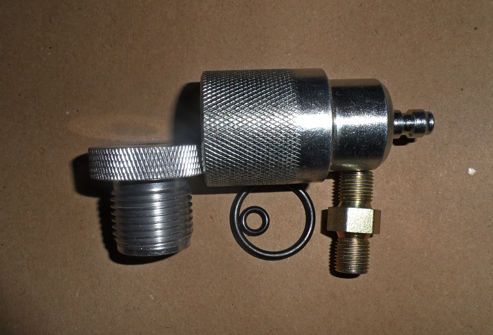 Продам осушитель. С наполнителем можно импровизировать. Для насоса, баллона... В комплекте резинки и переходник с мамы на папу М10х1. С другой стороны квик под фостер.