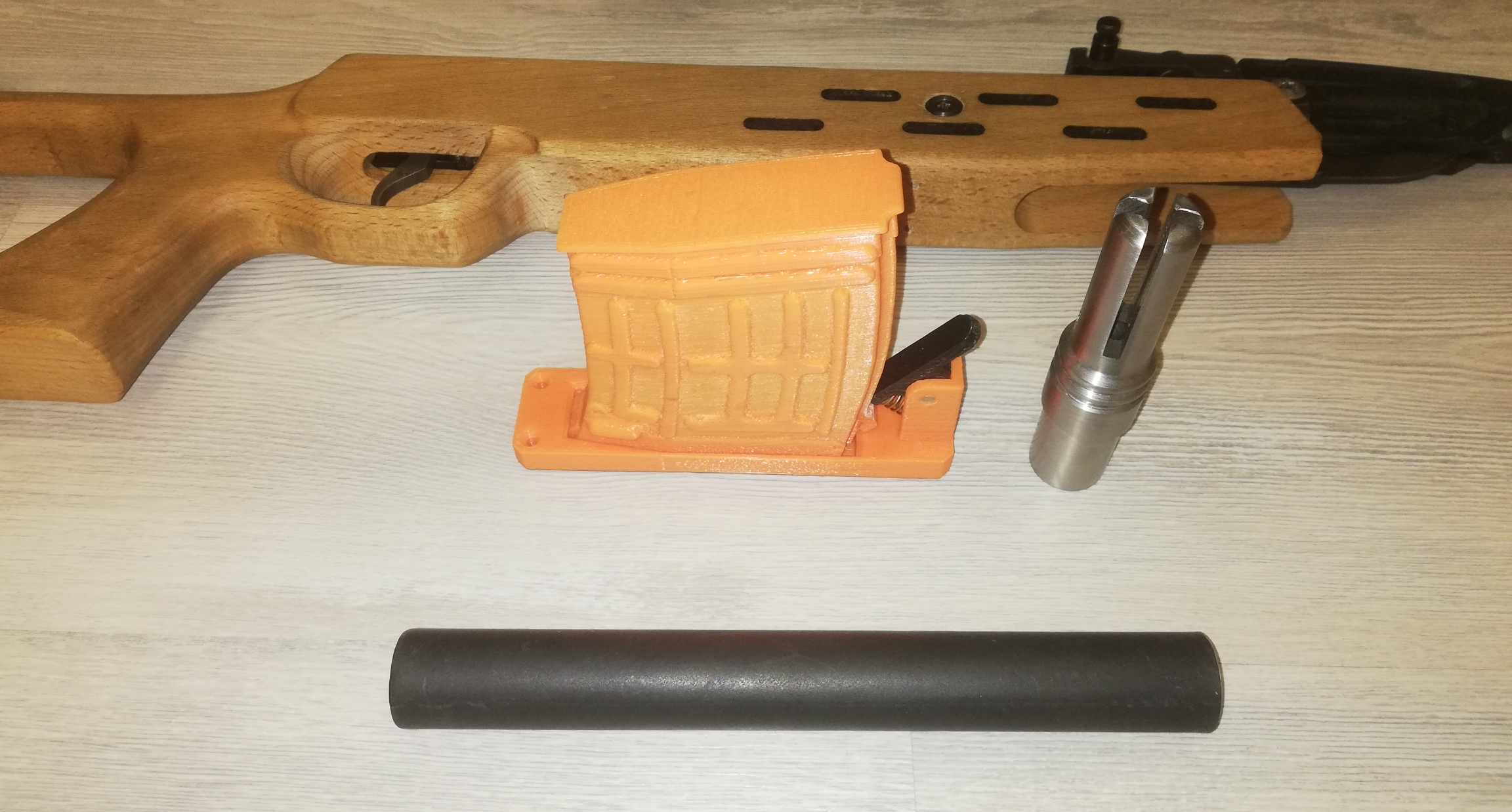 Стоит ГП, спуск доработан и мягок, внутри тоже все хорошо, два надульника и простой модер. Магазин используется, как контейнер для пуль. Отъемный, под покраску. Льняное масло для обработки ложа. Стилизована под СВД. Настрел небольшой исключительно для пристрелки. Хорошая точность.