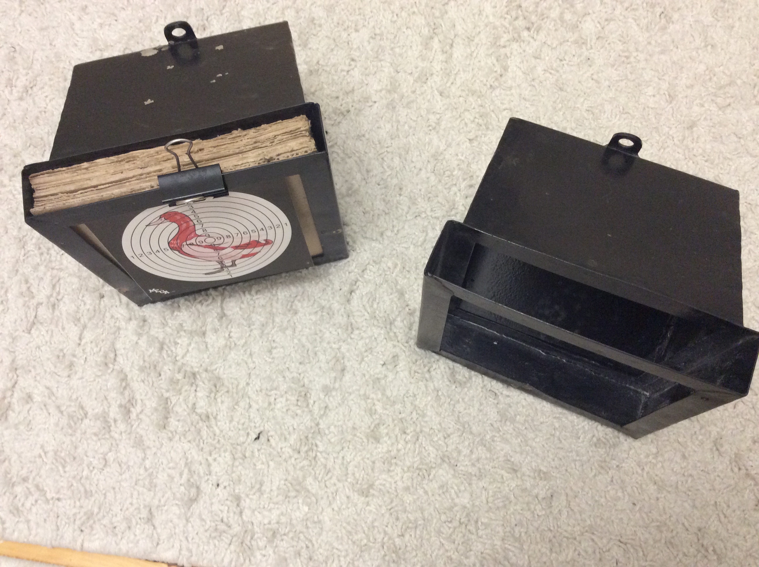 Между нижней наклонной и задней вертикальной стенкой есть зазор в который попадают стреляные пульки и