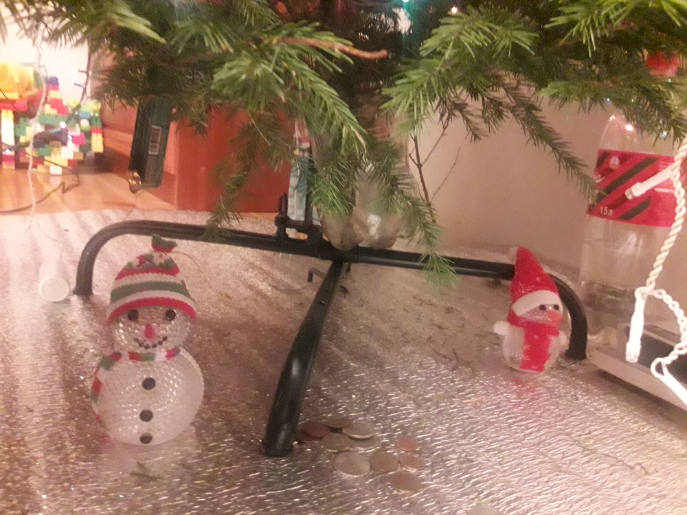 Ну и под новый год, также от нех.. делать сварил из валяющегося по углам металлолома раскладное крепление для ёлки. Собирается без применения ключей так как единственные два болта сделаны так (подварена к болтам всякая муйня), чтобы можно было крутить их даже детскими пальцами, и даже много лет спустя когда Зуббера не станет.. Покрасил в "радикальный" тёмнозелёный цвет. Ёлка в нем уже стоит. Наша семья - фанаты натуральной ёлки и ёлочного запаха... хотя на кухне для новогоднего настроя и поднятия аппетита стоит и небольшая искусственная ель. znaika