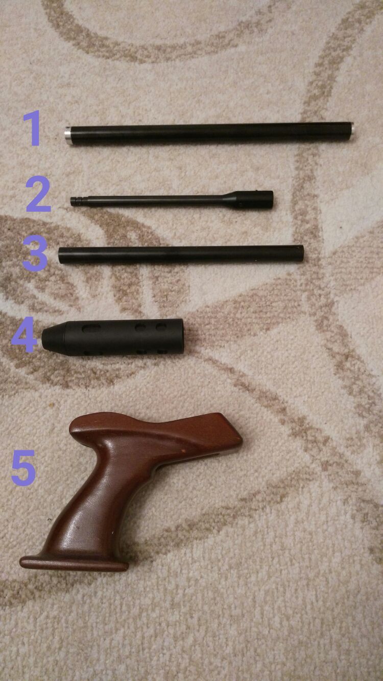 Лот #1: Модер на кандар пистоль. Длина:330 мм, диаметр: 20 мм. Идеально садится на родной ствол кандара. Цена: 35 рублей.