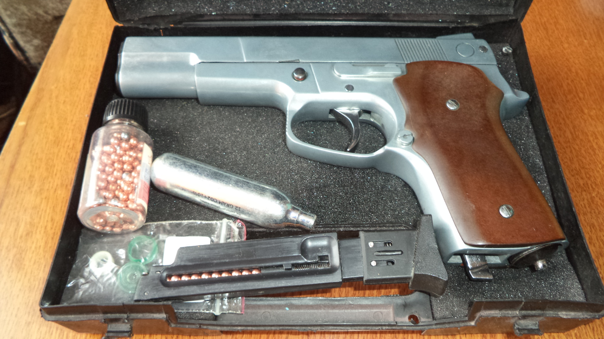 Аникс красивый , снят анод, спуск металлический , защелка магазина тоже металл.Щечки рукоятки бакелит.Гайка поджима баллона под шестигранник (6мм). При установке баллона шипит клапан, ремкомплект есть кому понравится поменяет . Кейс, ремкомплект, шарики, пистолет. За все 70 рублей.Сморгонь. МТС 80336863322.