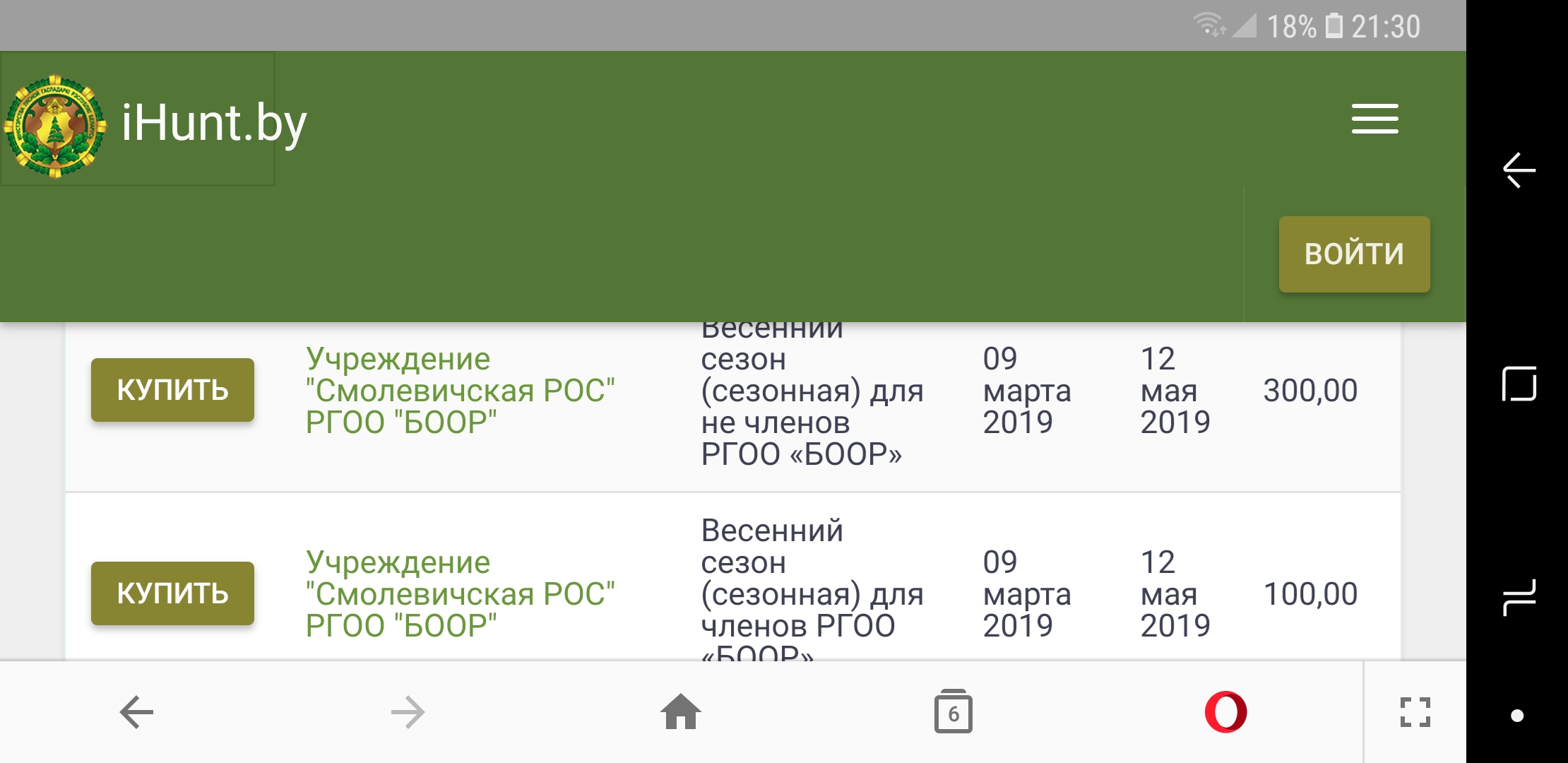 Вообще эффективность работы БООР и забота о членах общества видна не вооруженным взглядом... прямо на сайте Ihunt...