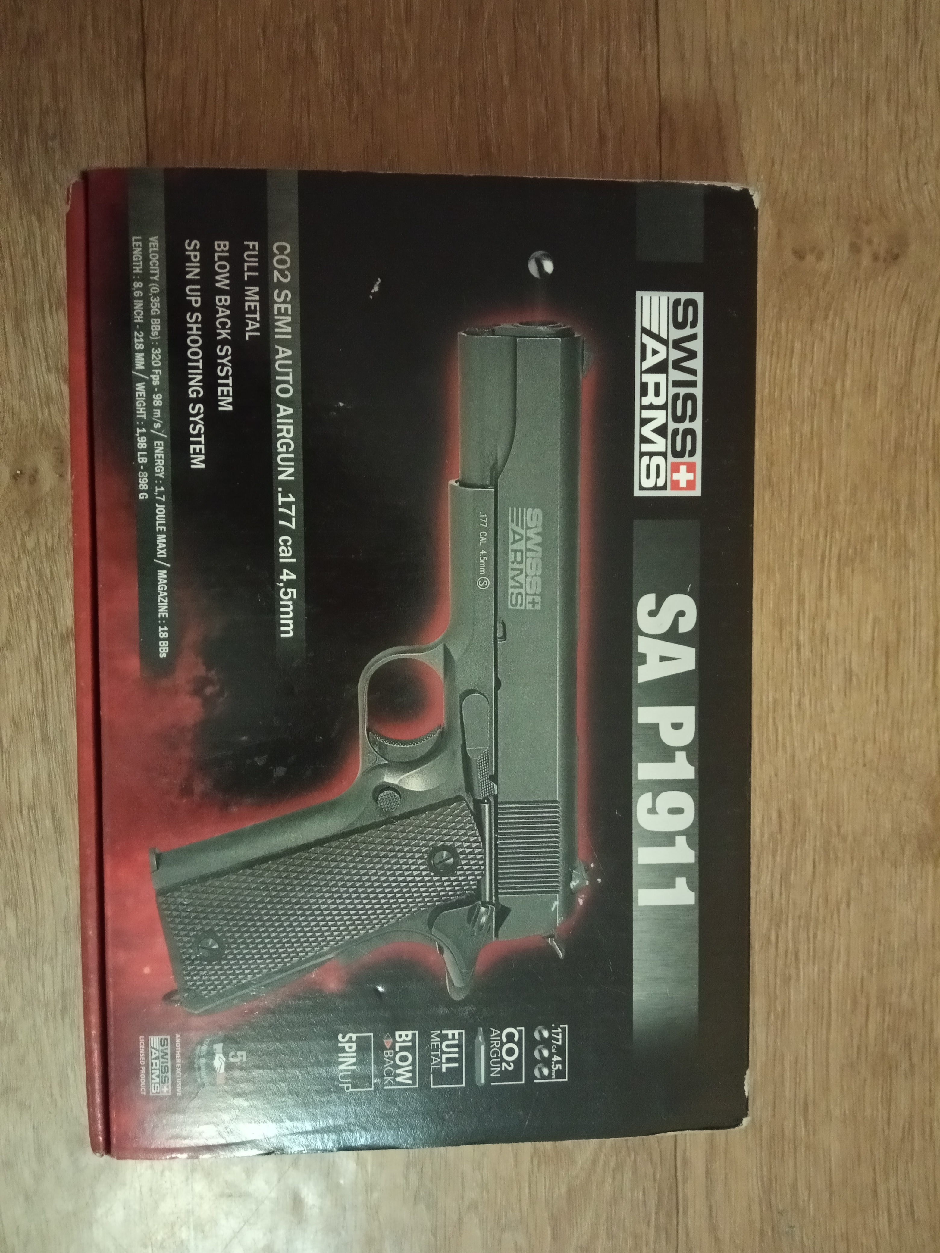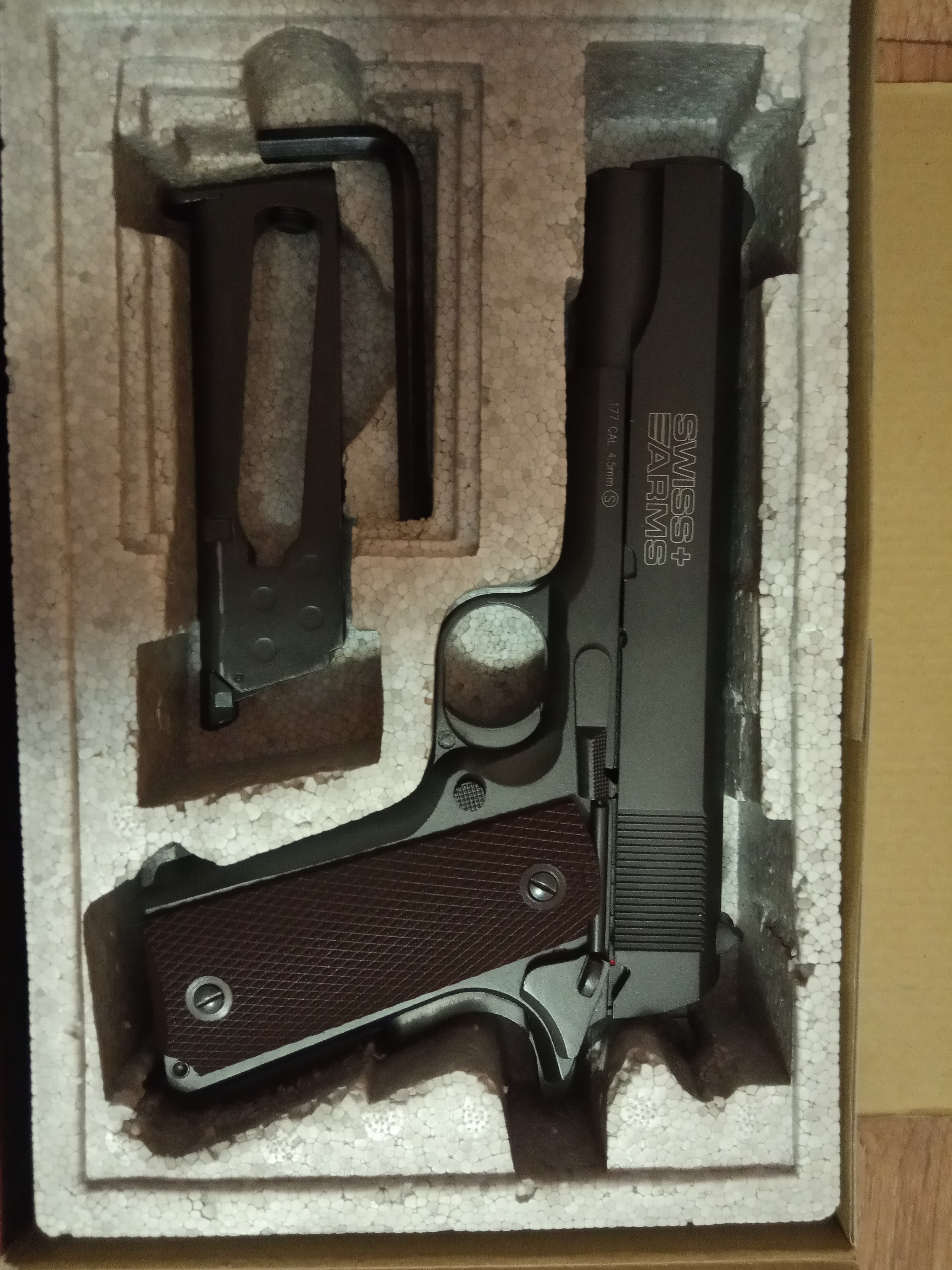 Продам Swiss Arms SA P1911. Копия кольта M1911A1, металлический, с блоубэком. Работает отлично. Отстреляно 9 баллонов (~36 магазинов). Минимальные потёртости на движущихся частях. 220р. Минск