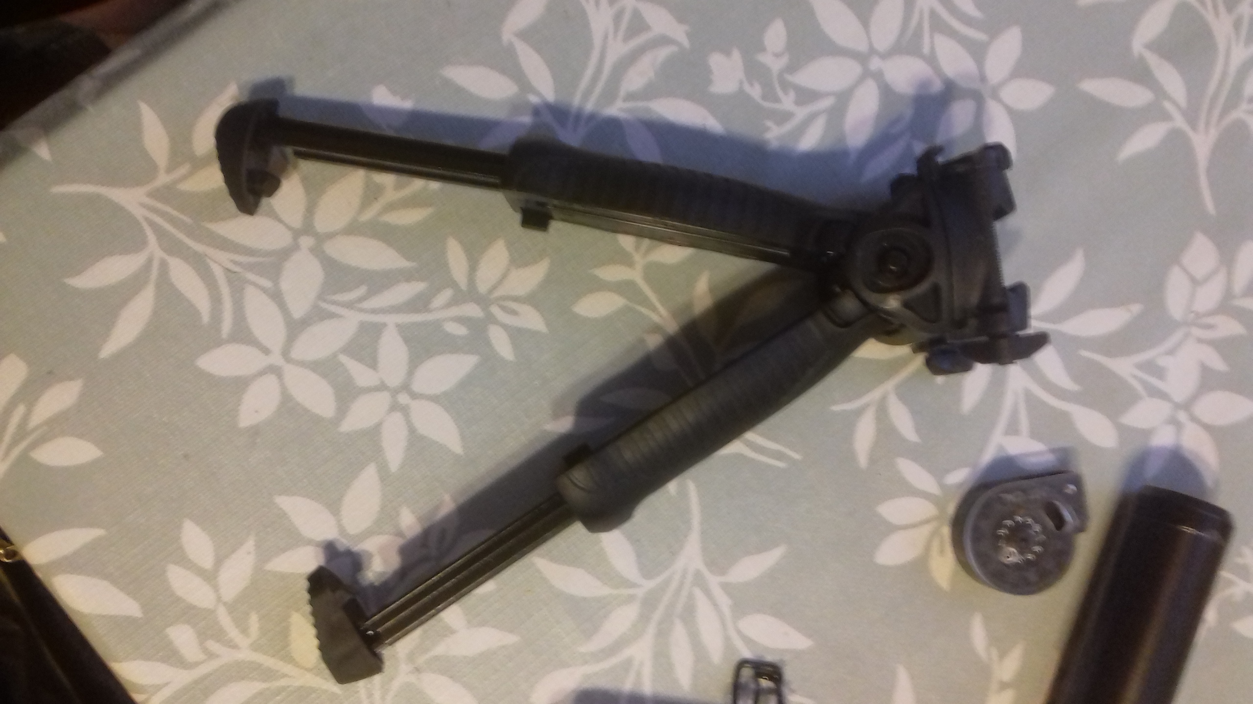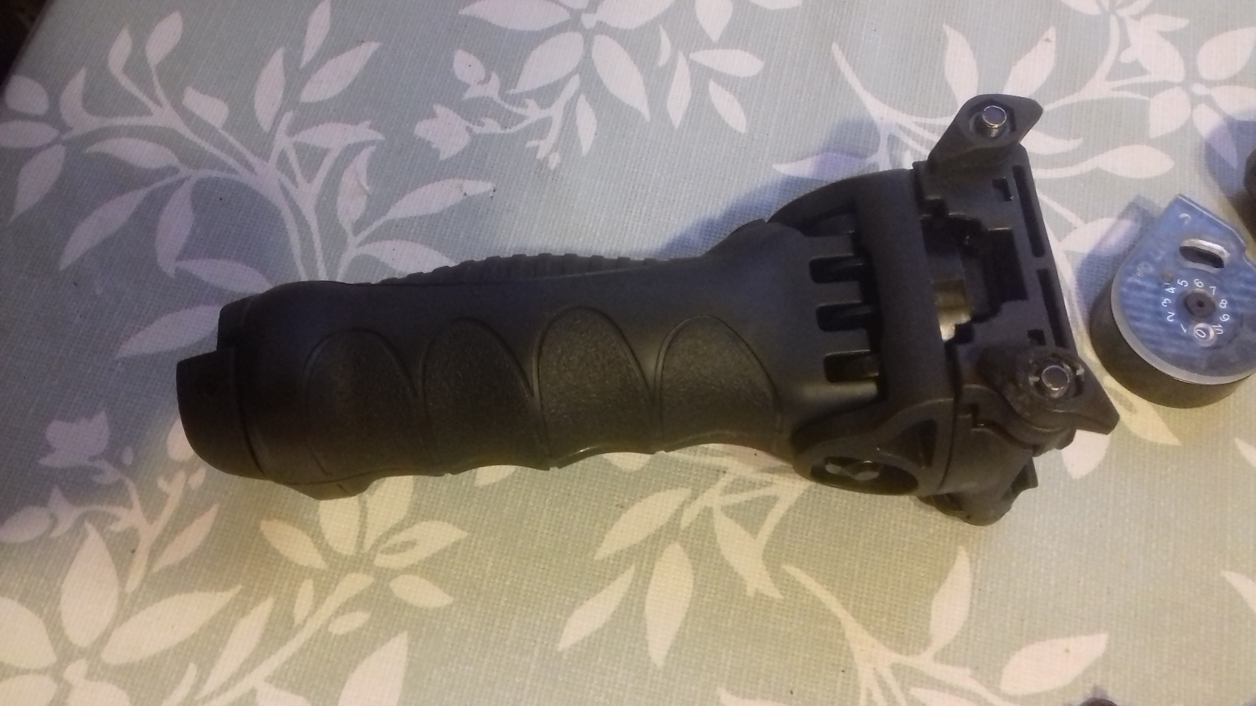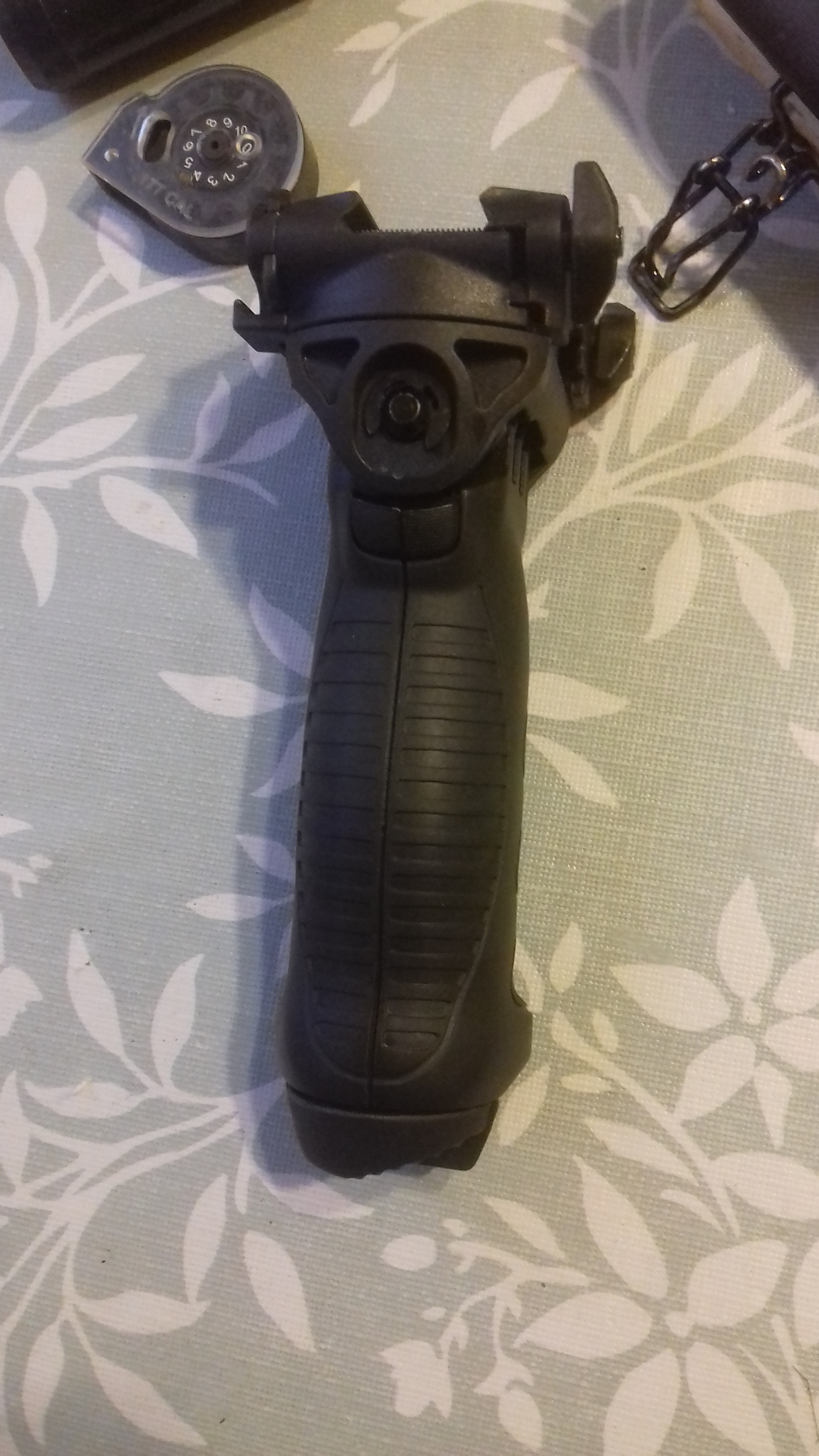 1. Тактическая рукоятка-сошки, высота в режиме сошек 140-200 мм, турельный поворот опоры+-30*, материла нейлон(корпус)+металл(ноги сошек) 40 руб.