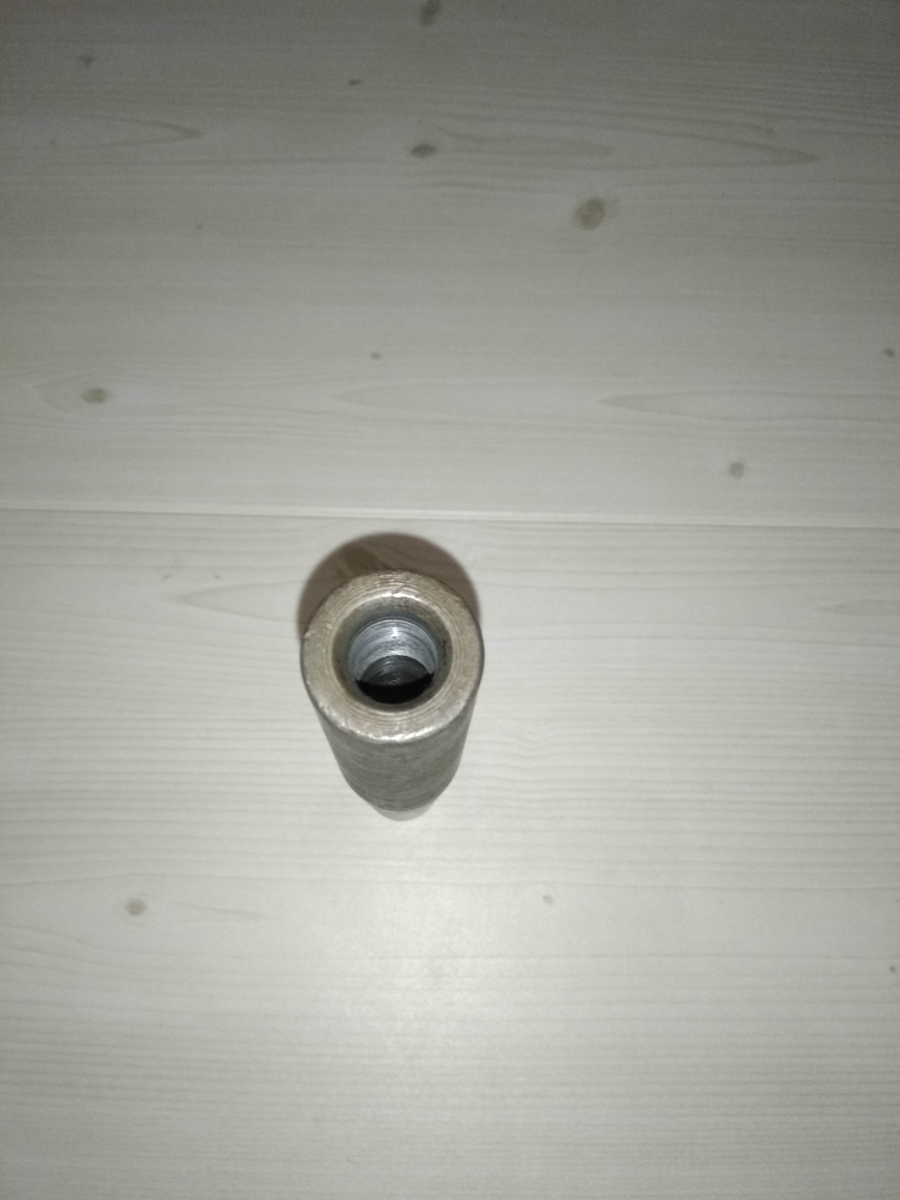 1. Чудо инженерной мысли- надульник/модератор/утяжелитель,:))) под резьбу м12х1. Максимальный вес-439гр, минимальный-340гр. Длина 140 мм, диаметр- 33 мм. Материал- сталь. Внутри 3 стакана, диаметр отверстия в пробке и стаканах 6мм. Все вкручивается друг в друга на резьбе. -30руб.