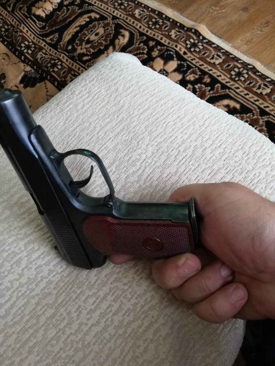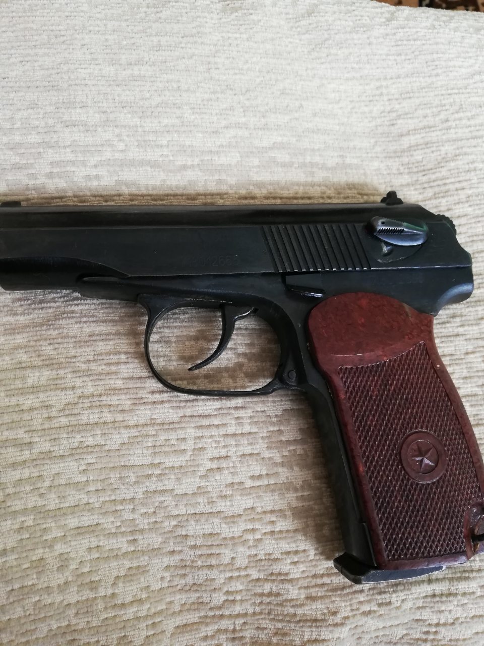 1) пм 654-28 коробка документы, слегка внешне изменён, установлен гладкий стволик с резьбой под удленитель или сигнал охотника с прокладкой. Цена 160р