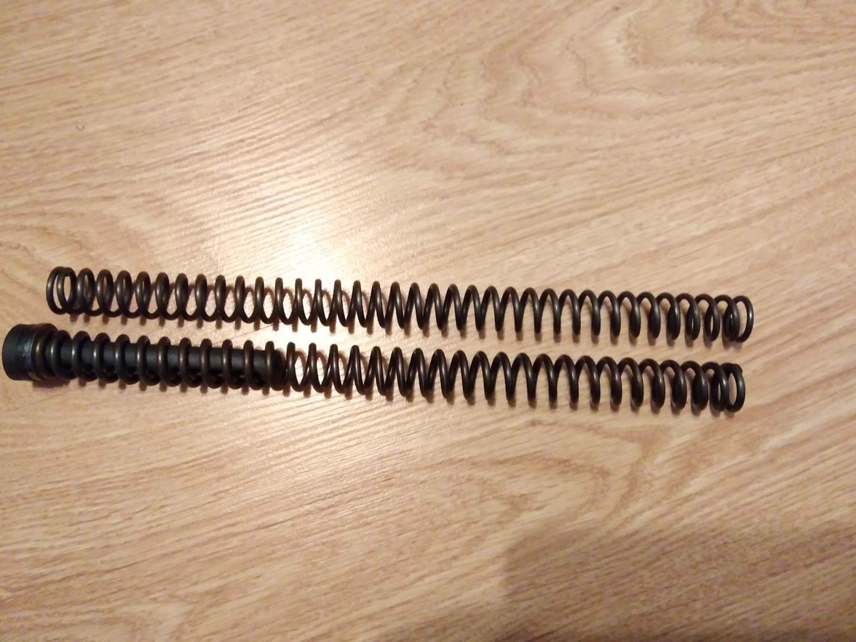 Доброго времени суток.Имеется две витых пружины,одна от ХАТСАН СТРАЙКЕР ЭДЖ (усиленная- новая)длина 270мм.витков36,диаметр проволоки 2.8мм.Вторая от ХАЧИКА 55s,длина 265мм,витков 34,диаметр проволоки 3.2мм.с направляющей.Цена за каждую 13 руб+пересыл,за две 23 руб.