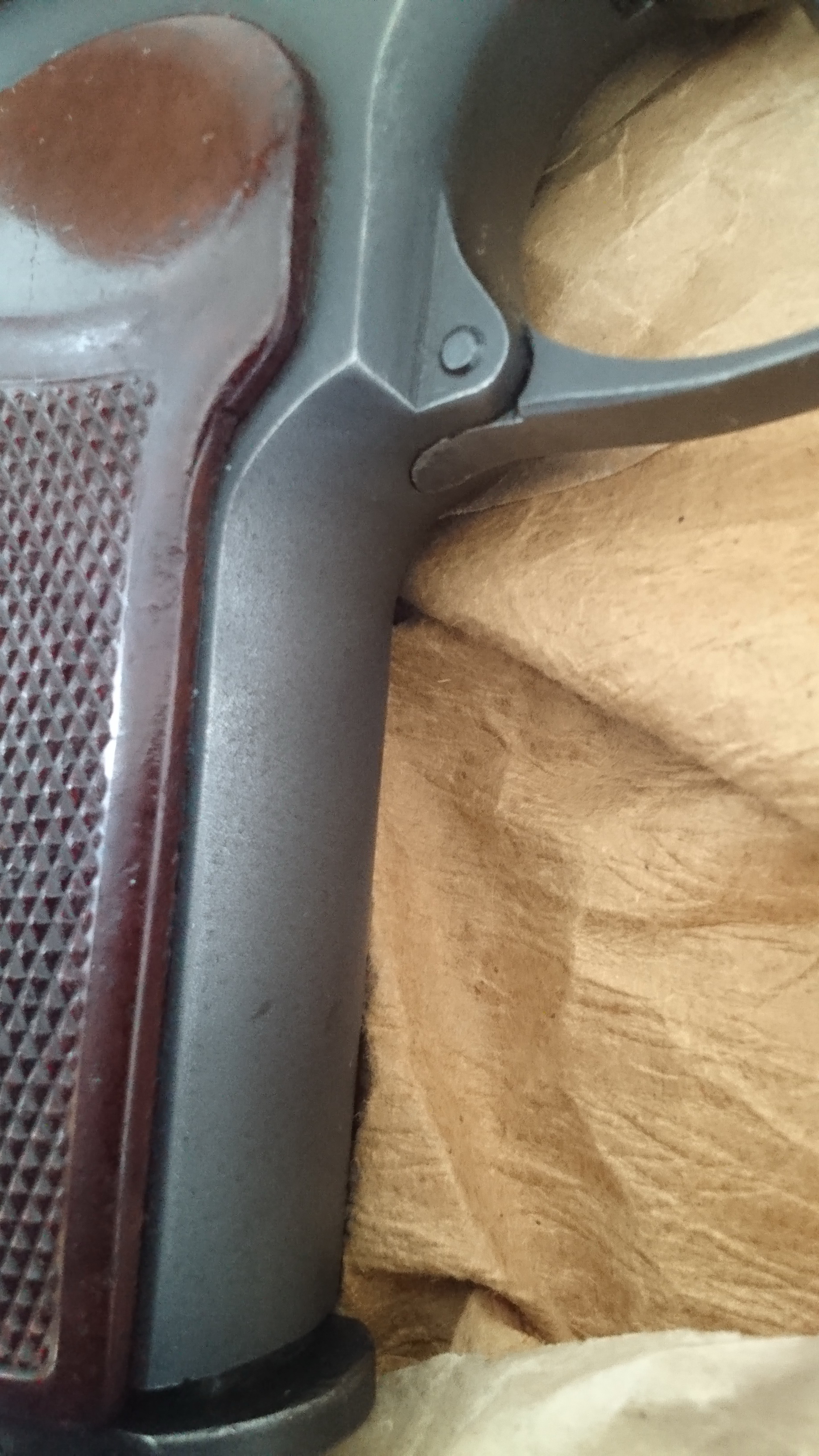 Также присутствуют: бакелитовая рукоятка, фигурная скоба, узкие рамка и магазин, на рукоятке спереди нет насечек, затворы правильные (борода, фаска, вырез под экстрактор и т.д.), широкий целик, красный предохранитель 50-60 годов.