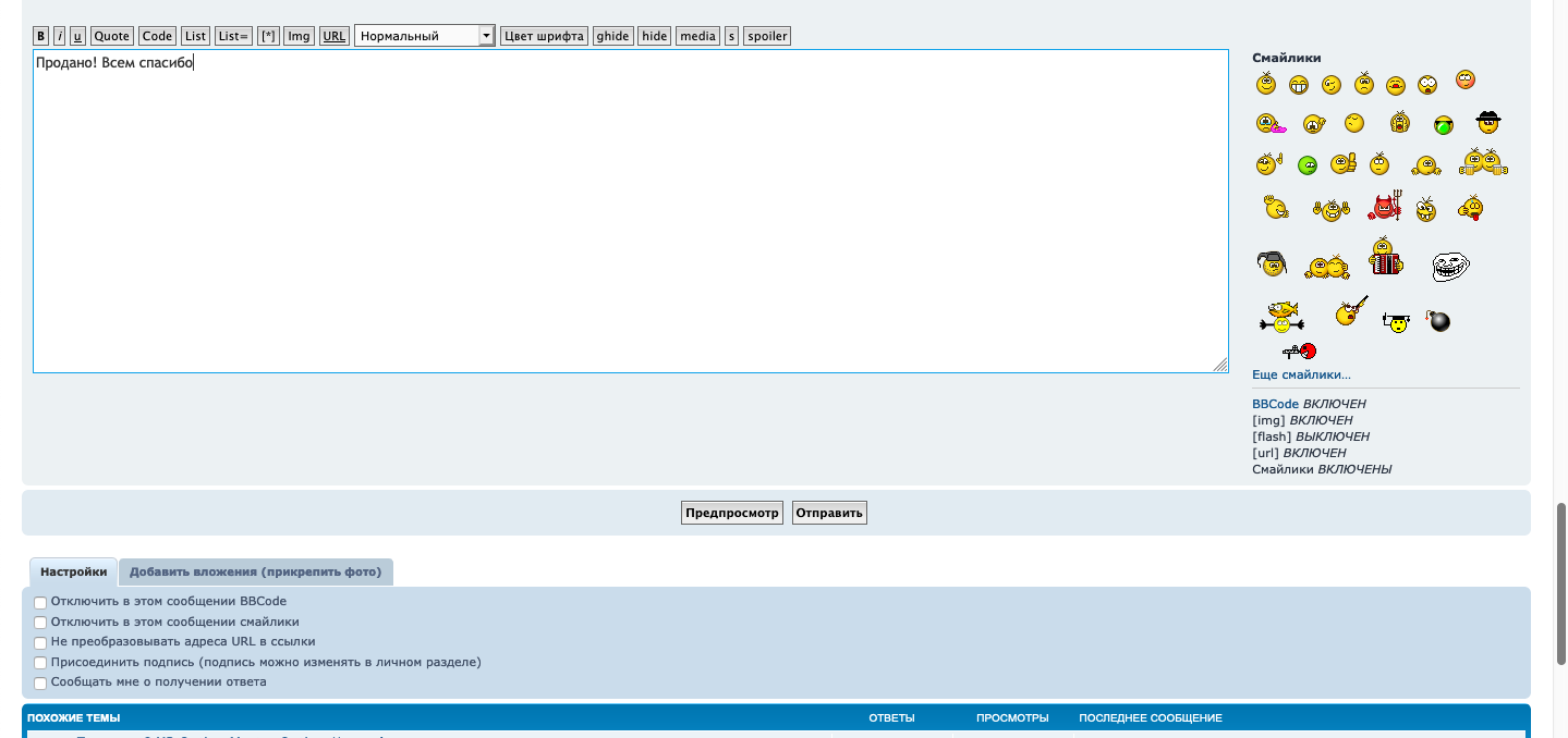 2.6.1 На поставленный уточняющий вопрос о предмете продажи следует отвечать в теме. Кроме случаев, когда сам вопрос связан с личной информацией. Разрешено дублировать ответ в личку.