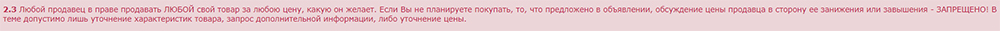2.6 Поднятие темы о продаже без изменения цены или изменения характеристик товаров чаще чем 1 раз в 5 дней запрещается.