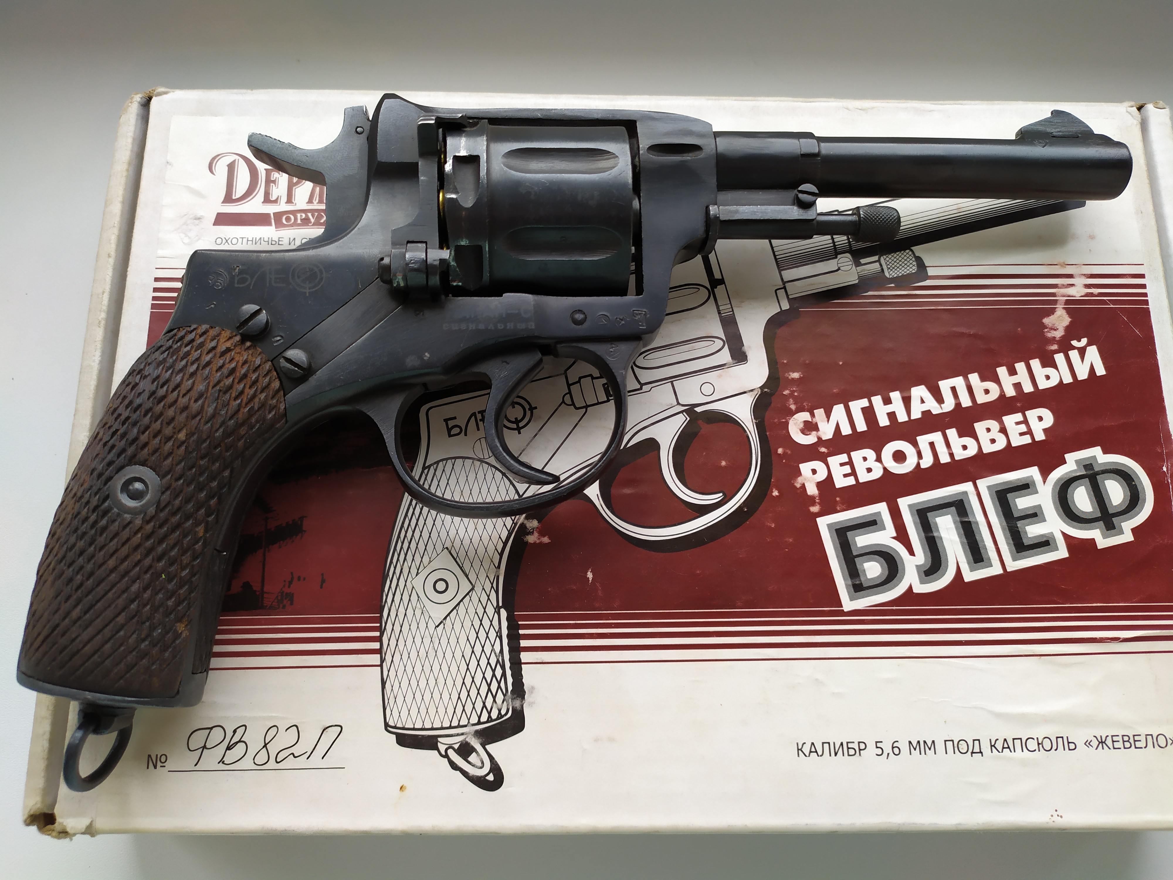 Детали на одном номере. Барабан родной с клеймом треугольник в круге. Установлен имитатор дульного среза.
