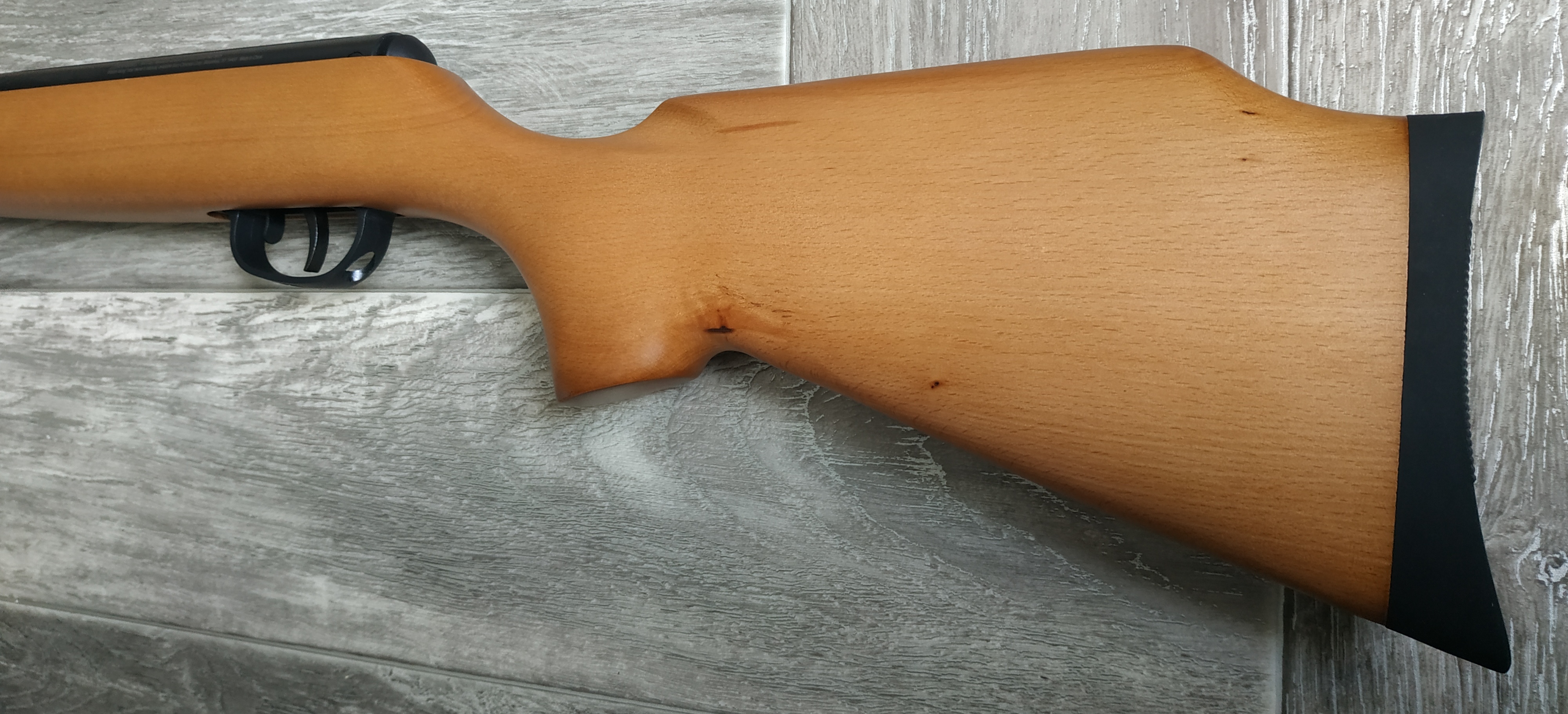 Деревянное ложе, металлическая муфта, легкий взвод, хороший спуск, предохранитель не автоматический, открытые прицельные, есть "ласточкин хвост" для установки оптики