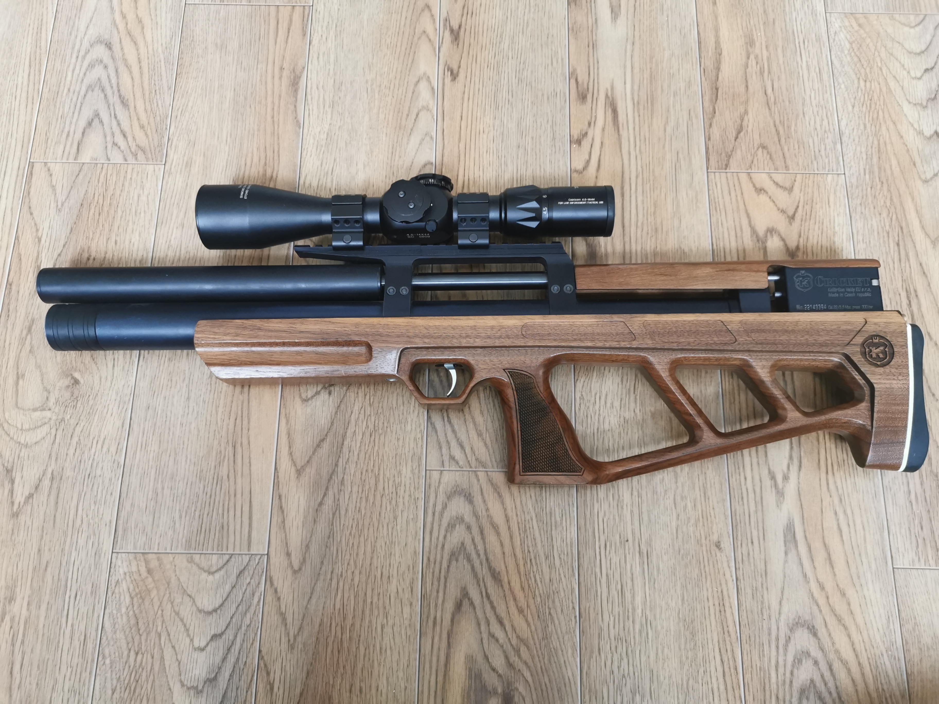 Давненько тут не появлялся. Итак, продам своего крикет 5.5 ложе самое удачное дерево "забор". Куча кучная, винтовка не разбиралась, даже ложе не снимали, я единственный владелец. В отличном состоянии, без каких либо потертостей на ложе. Настрел порядка 6 банок за весь срок эксплуатации. В комплекте: винт, 2 барабана, прицел вектор оптикс 4.5-14 с не меняющей актуальность, в зависимости от кратность, сеткой поправок (очень светлый) , 2 антибздуна разной конструкции, баллон 7 литров стальной, зарядная станция, сумка анипаливная (от ракеток теннисных), документы, зип родной, мишень механическая подъемная в виде белки, плюс отдам всю мелочь типо клеящихся мишенек, остатки пулек и др. Цена видится 3300 3200 рублей