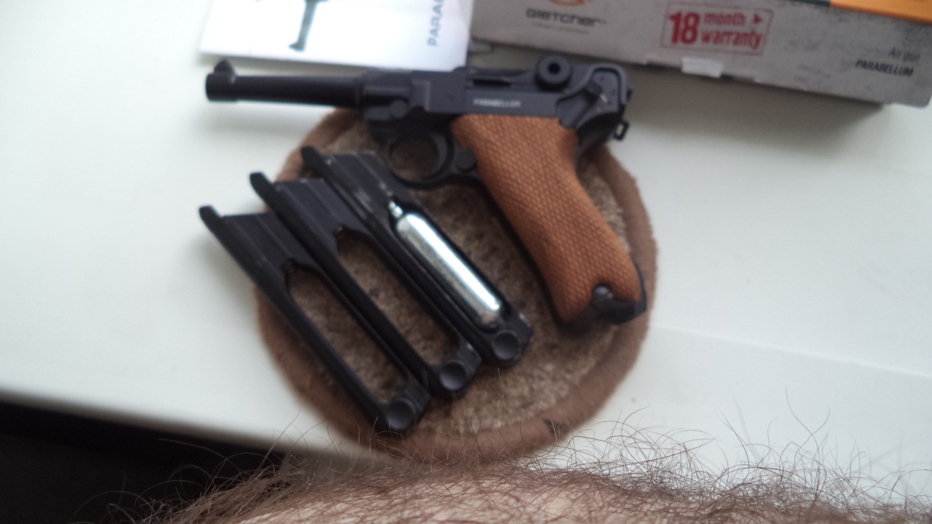 Продам Парабеллум , состояние нового , рукоятка дерево под оригинал, три рабочих магазина, пластиковые накладки в придачу , коробка документы и пр хрень. 320р. Сморгонь 80336863322.