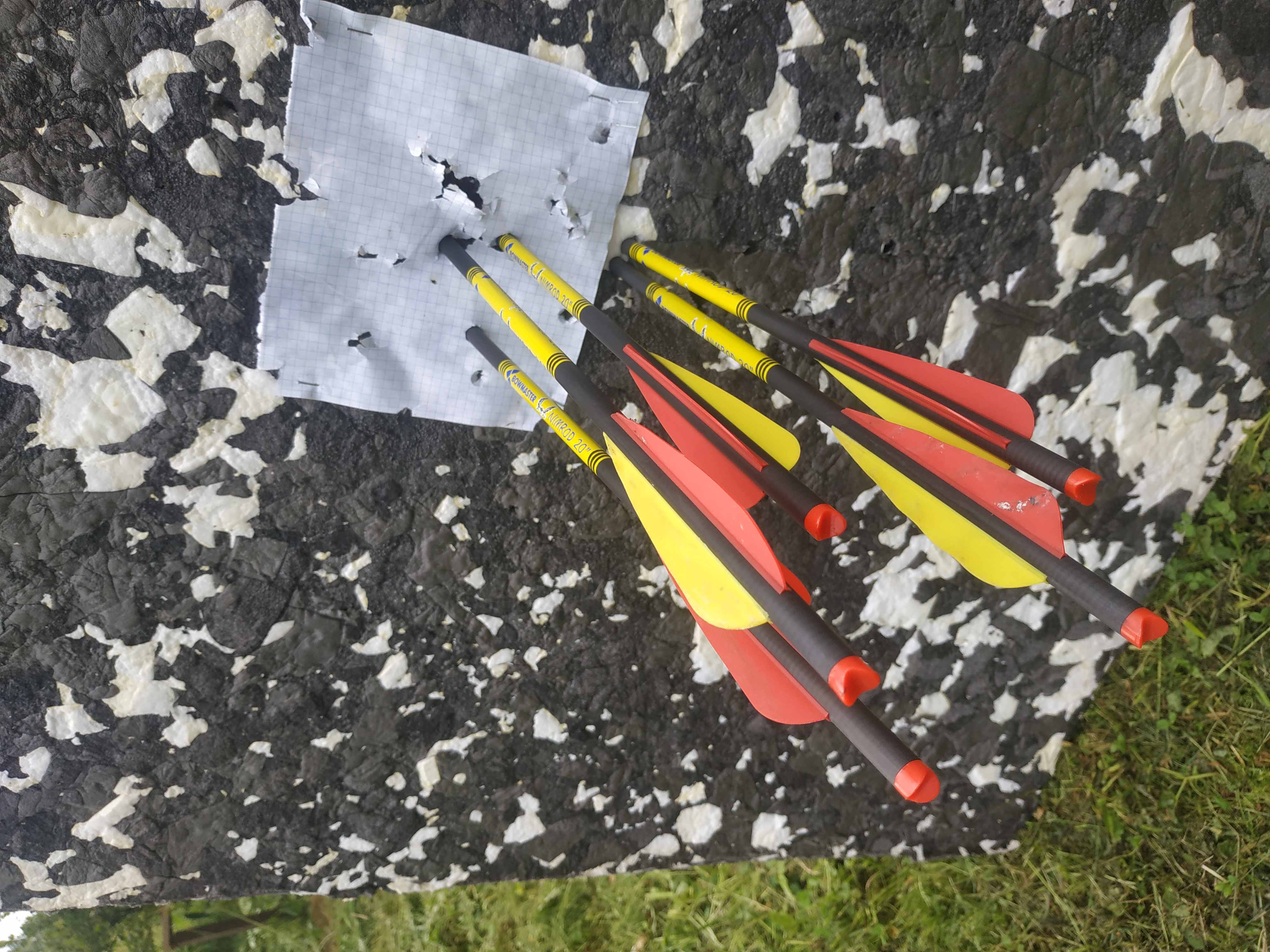 Состояние нового.Усиилие натяжения 43 кг(регистрации не требует).Пристрелян.Полный комплект:прицел, кивер, ремень, натяжитель ручной, 10 карбоновых стрел и охот наконечники.Очень точный(на фото отстрел на 50 метров) и качественный :co_ol: