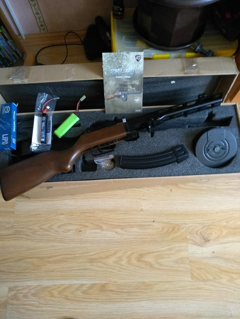 Продам страйкбольный привод ппш от Сноу Вольф.Заменено пластиковое ложе на настоящее от ппш-41,затонировано и пропитано восковым лаком.Перебран гирбокс (пружина 120, поршень с металл гребенкой,нозл с уплотнительным кольцом,заменена резинка хопа,поменяна проводка и шиминг-смазинг.К нему акум 11.1 на 1450 ли-по.По работе отлично все.Так же убран люфт бубна-магазина.Выхлоп на фото.В комплекте сам привод,2 магазина(бубен и секторный рожок)Цена за полный комплект в родной коробке - 450 руб.Подойдет и для страйка и для харда - скорострельность под 1000 выстрелов,стреляет далеко и больно. :ps_ih: