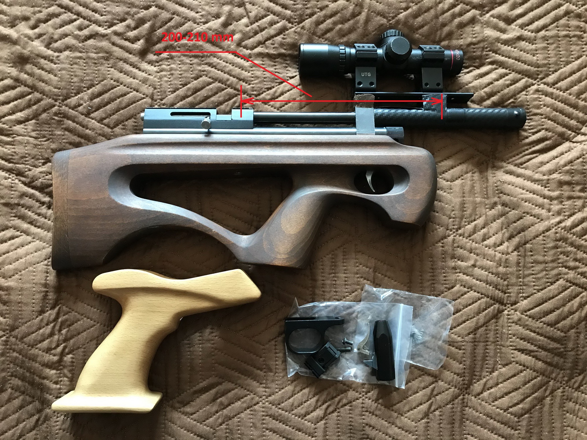 Пневматический пистолет СО2 TYTAN CP1-M 5.5mm он-же KANDAR в варианте мини булка. Дерево, восьмёрка и перенос спуска от Dr_Disel. Рассверлен перепуск и немного накопитель.Установлен типа глушитель. Настрел минимальный (не когда). прицел Щ4,5 х 20 Рукоять и всё остальное для перевода в пистолет имеются. Цена 400 рублей.