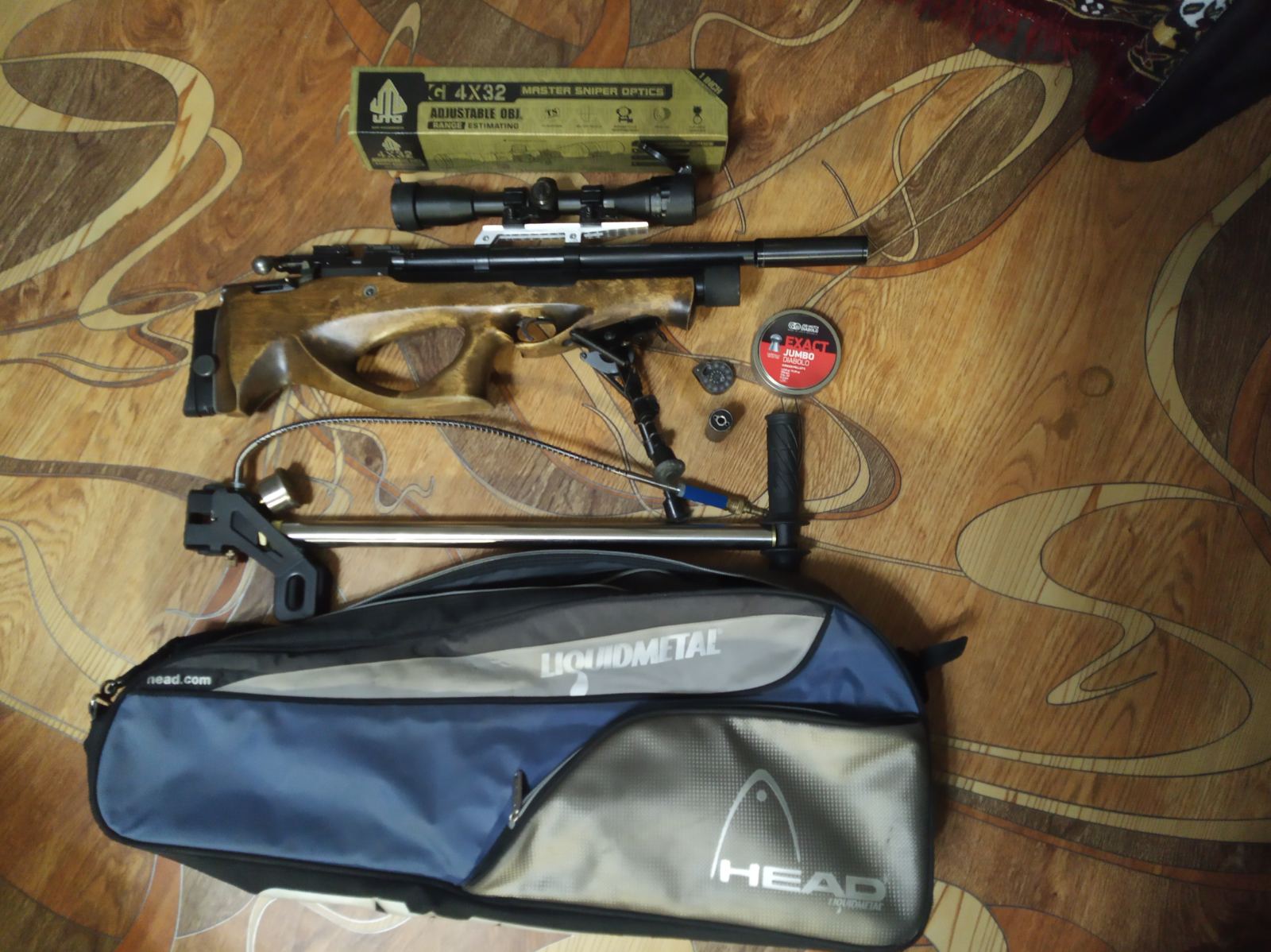 Продам отличную винтовочку, в калибре 5,5 до 3 Дж, в комплекте все, что на фото (сошки, прицел, сумка, барабанчик, насос, пульки и т.д) без дербана, за все 1200 белок, быстрым торг!