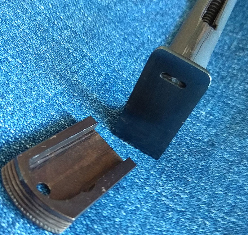 Насадка для запуска СО, сами сигналы что остались. Родные внутренности литые-пиленые, две головы (с зацепом от 28 серии, надо обтачивать), гайка с зацепом - ее поставил и сразу снял, т.к. ммг магазин упирается патроном в рог зацепа. Запасной клапан, какие-то резинки, коробка, бумажки, ключи.