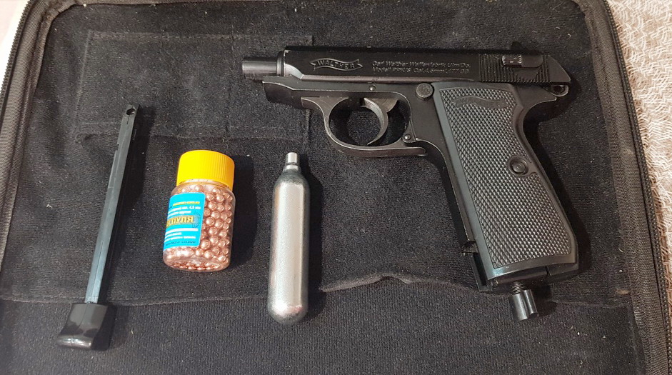 --Пневматический пистолет Umarex Walther PPK/S 4,5 с блоубэком, состояние близко к новому, в комплекте шарики, баллончик, цена 175 р. Возможен обмен на любую пневматику.