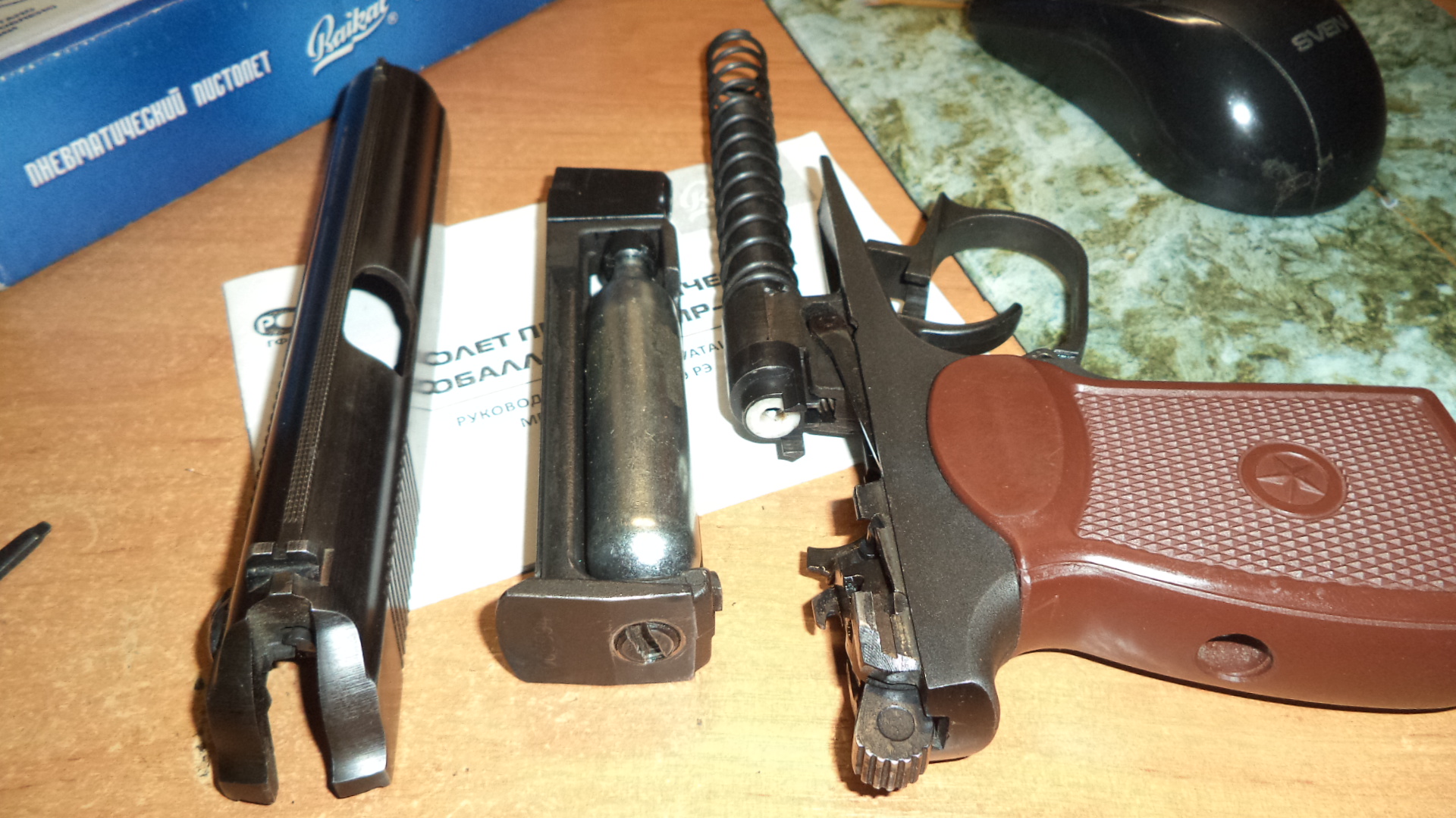 Немного изменился внешний вид Убраны насечки на рукояти, проточена скоба под фигурную , за шлифован срез, установлена фторопластовая прокладка , убраны все болталки затвора и магазина. Цена 220р.