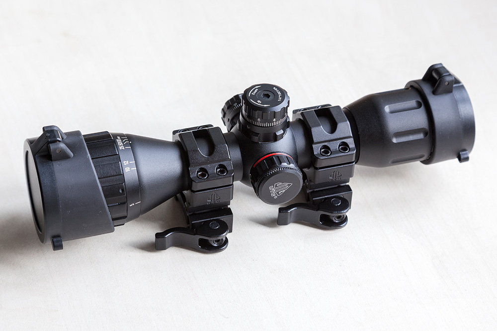 -Прицельная сетка: Mil Dot, 9 точек в каждом направлении