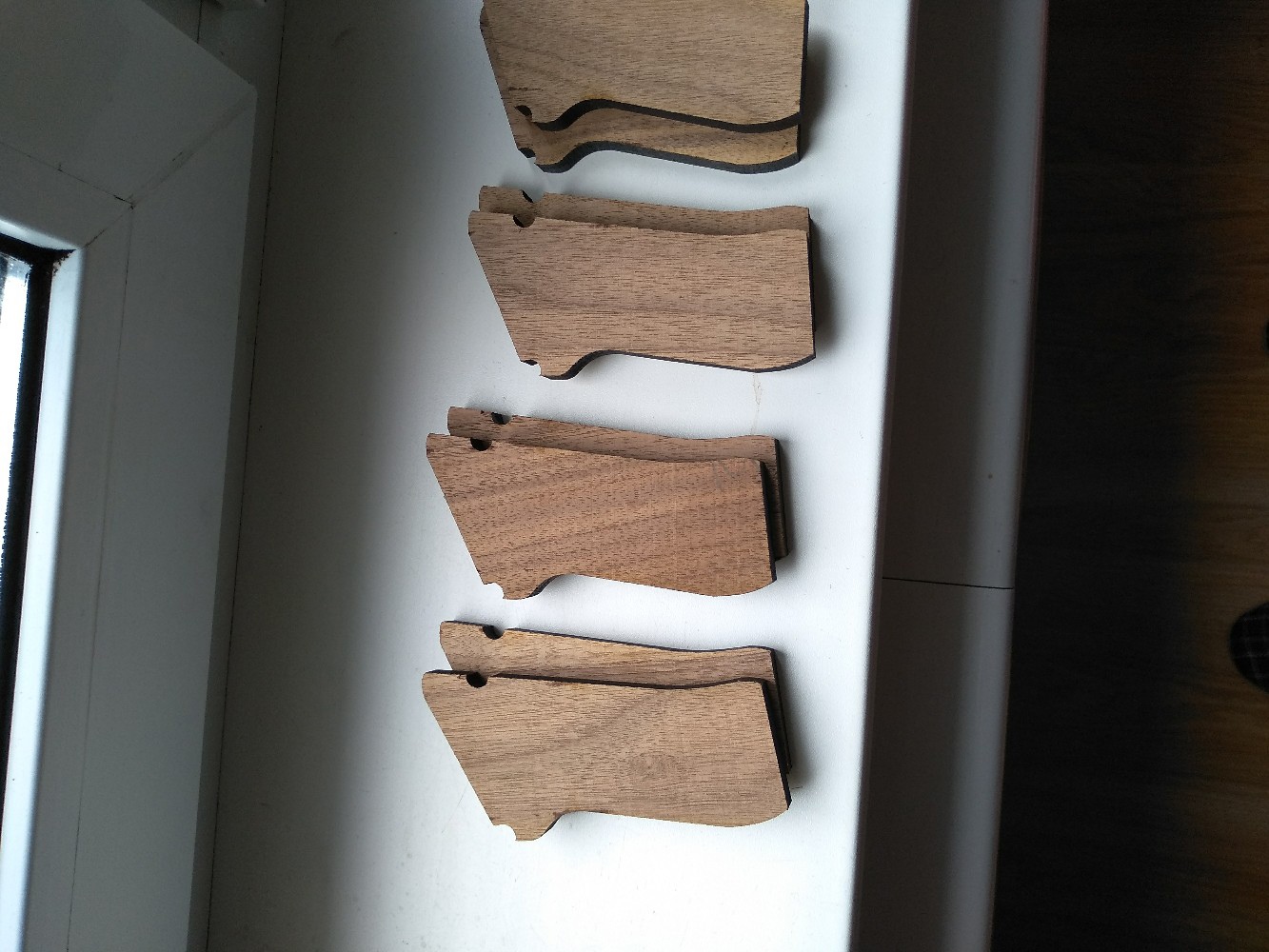 Есть несколько пар накладок - заготовок на парабеллум.Материал - канадский орех.Цена за пару заготовок - 15 руб.Есть пара уже почти готовых под парабеллум от умарекс - 30 руб.Почта возможна.Тел для связи +375295596721.