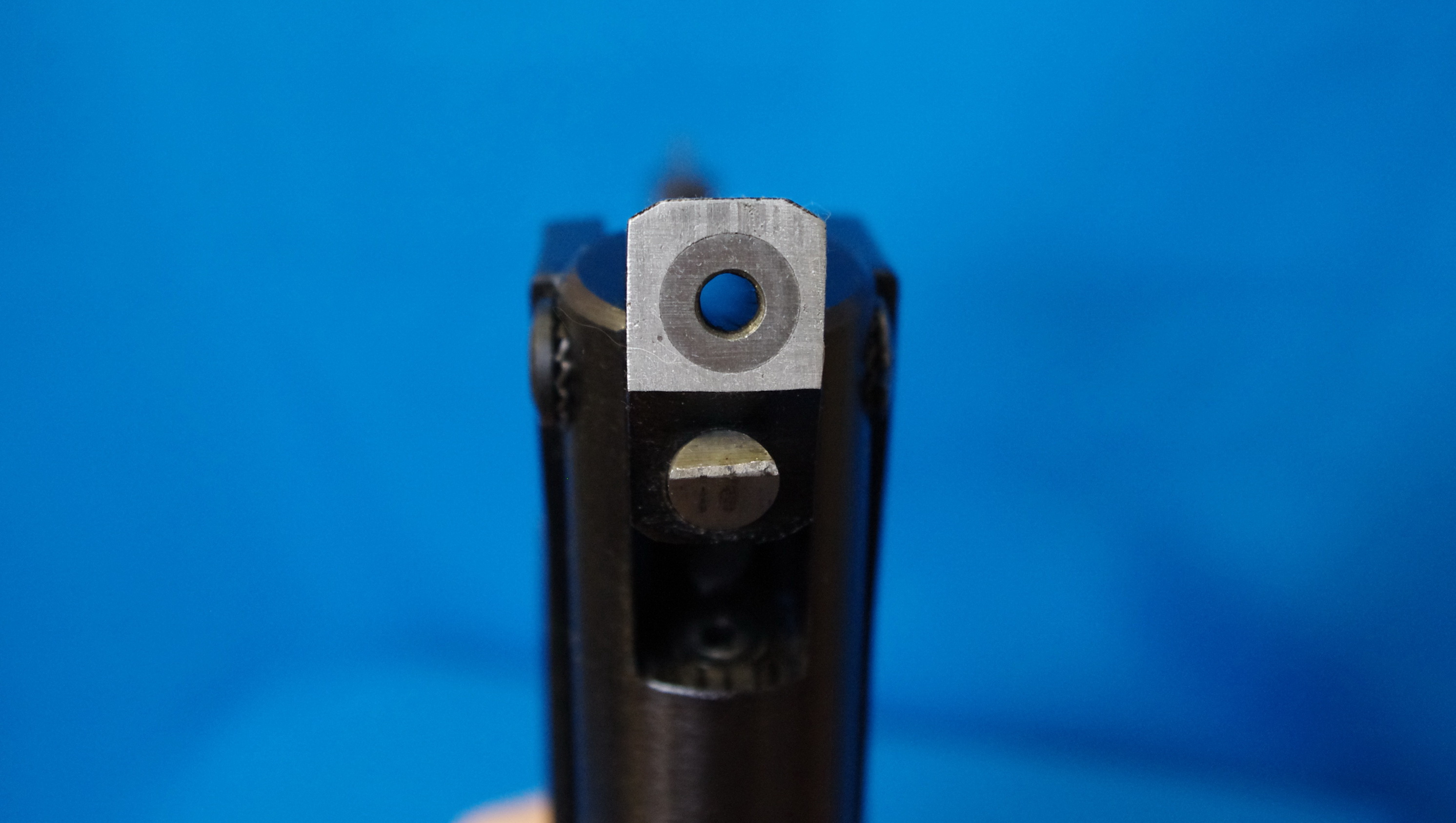 В итоге сборки: ствол задран вверх, хотя муфта не была пилена. В казне ствола было “ведро”. Так как сам ствол в хорошем состоянии, то решил повозиться с пистолетом. Обрезал казенную часть ствола, посадил в муфту с небольшим выбегом, но результат стал лучше не на много.