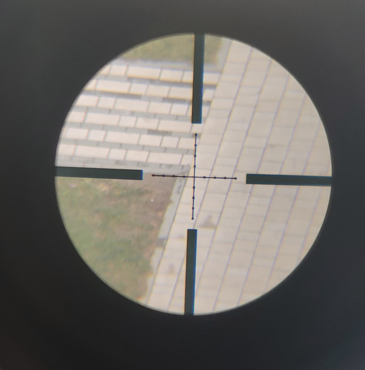 Сетка Mil-Dot, средней толщины (на фото сетка на 12х)