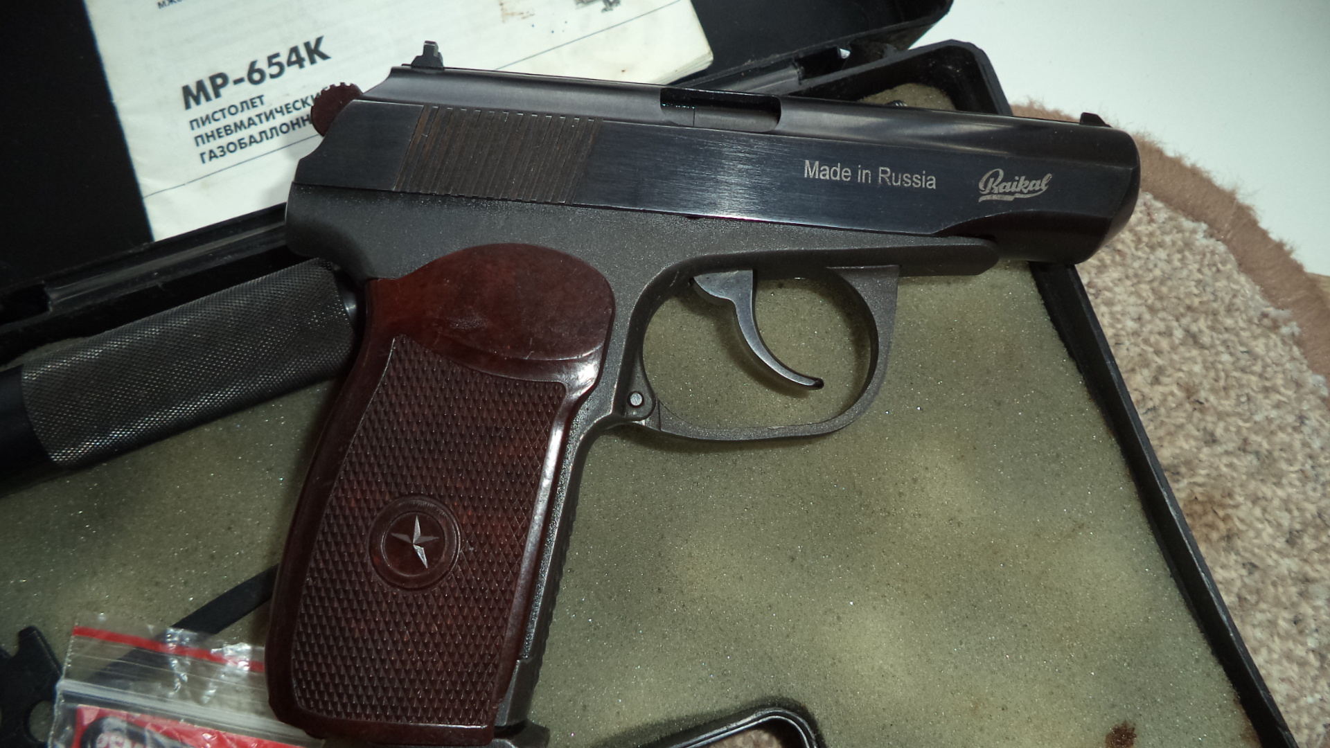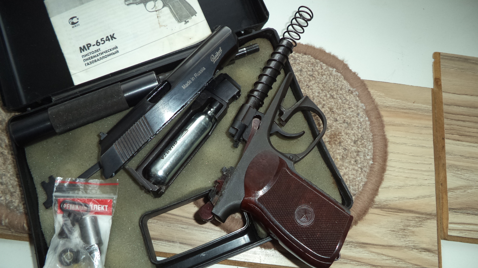 В комплекте как на фото с красным зипом 400р. Пистолет,ств. с удлинителем ,ключ, ремкомплект, , болт с антабкой ,переходник для запуска ракет, кейс. Красный зип только комплектом - тяга, фрезерованный крючок, дутая ЗЗ , курок - 120р. Стволик с удлинителем- 50р. Бакелит- 30р. Пест без красного зипа - 210р.Состояние очень хорошее, Сморгонь. 80336863322.