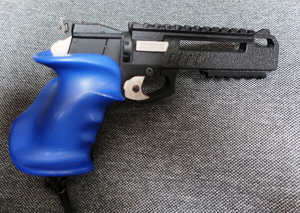 Изделие в отличном состоянии. Изначально был пластиковой версией. Заменены на металл: винт поджима баллона, крышка усм, целик, спуск и фиксатор барабана. Новая муфта ствола, рукоять с магнитным фиксатором на выбор: синяя или черная. Паспорт изделия. Цена 250 рублей. :uch_tiv: