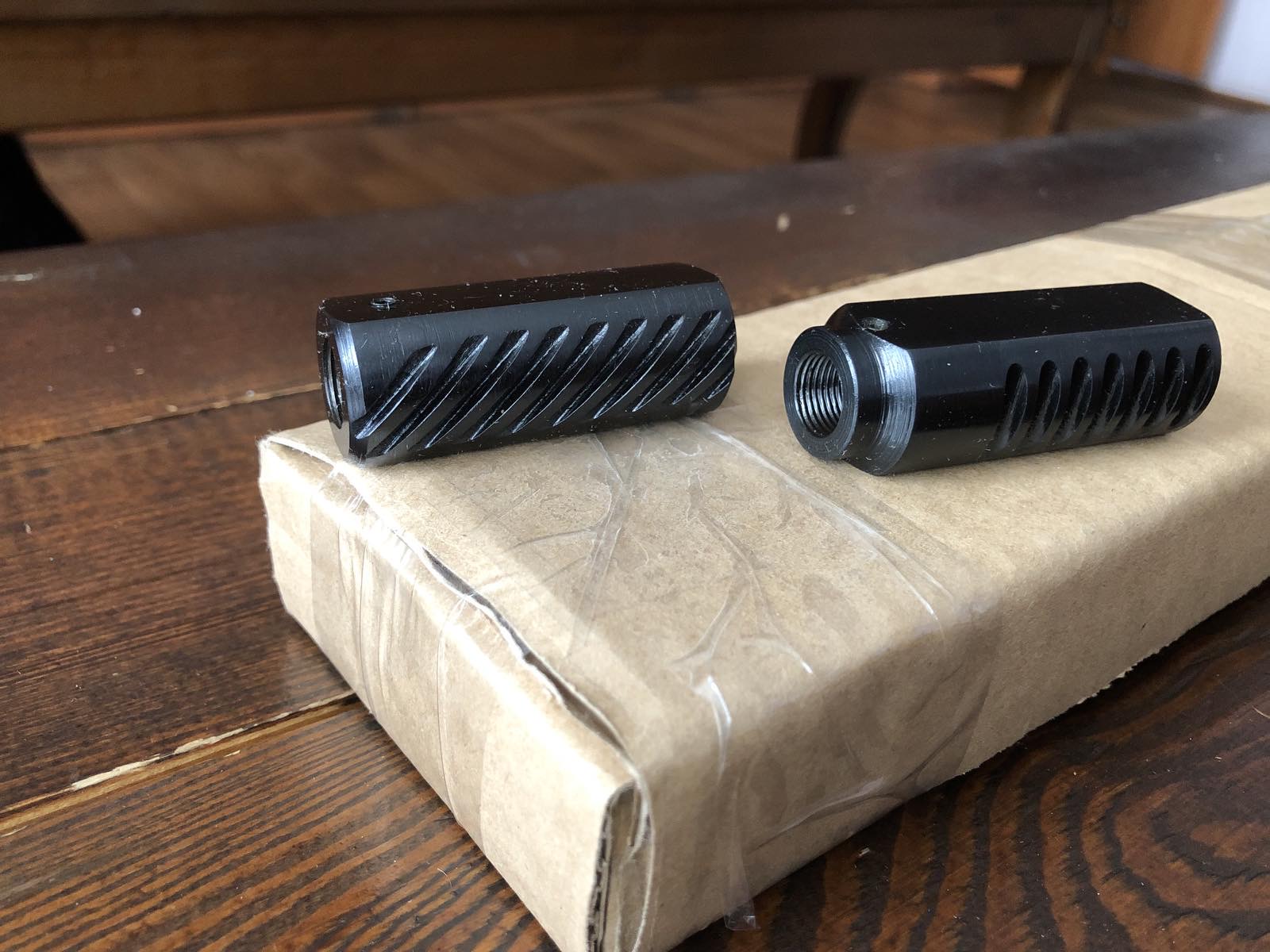 Предложу вашему вниманию надульник по мотивам дульного тормоза. Естественно только для МРок с резьбой на срезе. Резьба М12х1,0 Фиксация от проворота гуженом. Вес примерно 150 гр. Цена пусть будет 25 руб, «жабры» прямоугольные, полукруглые, расположение косое или поперёк. Любой ваш каприз вобщем :mi_ga_et: