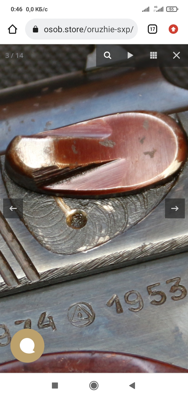 dizcor писал(а):Кстати, затвор совсем не похож на 53 год, шлифовка бороды имеет продолговатую форму, а не пологую круглую, и следов от фрезы под предохранителем не видно
