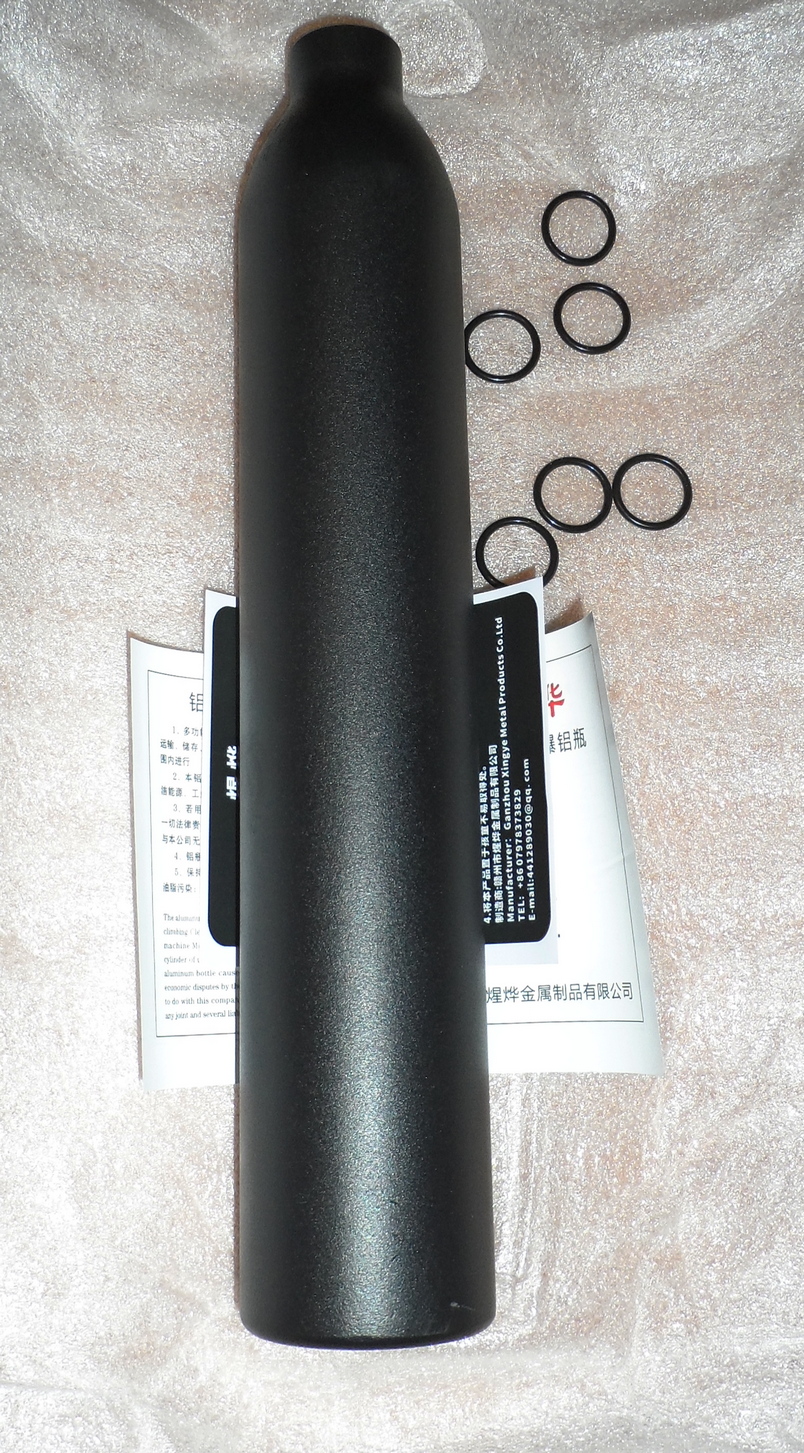 Комплект для дозаправки. Новый. Очень удобно брать с собой, как дополнительный источник воздуха. Объем колбы 0.5 л. Рабочее давление 300 атм. В комплект входит