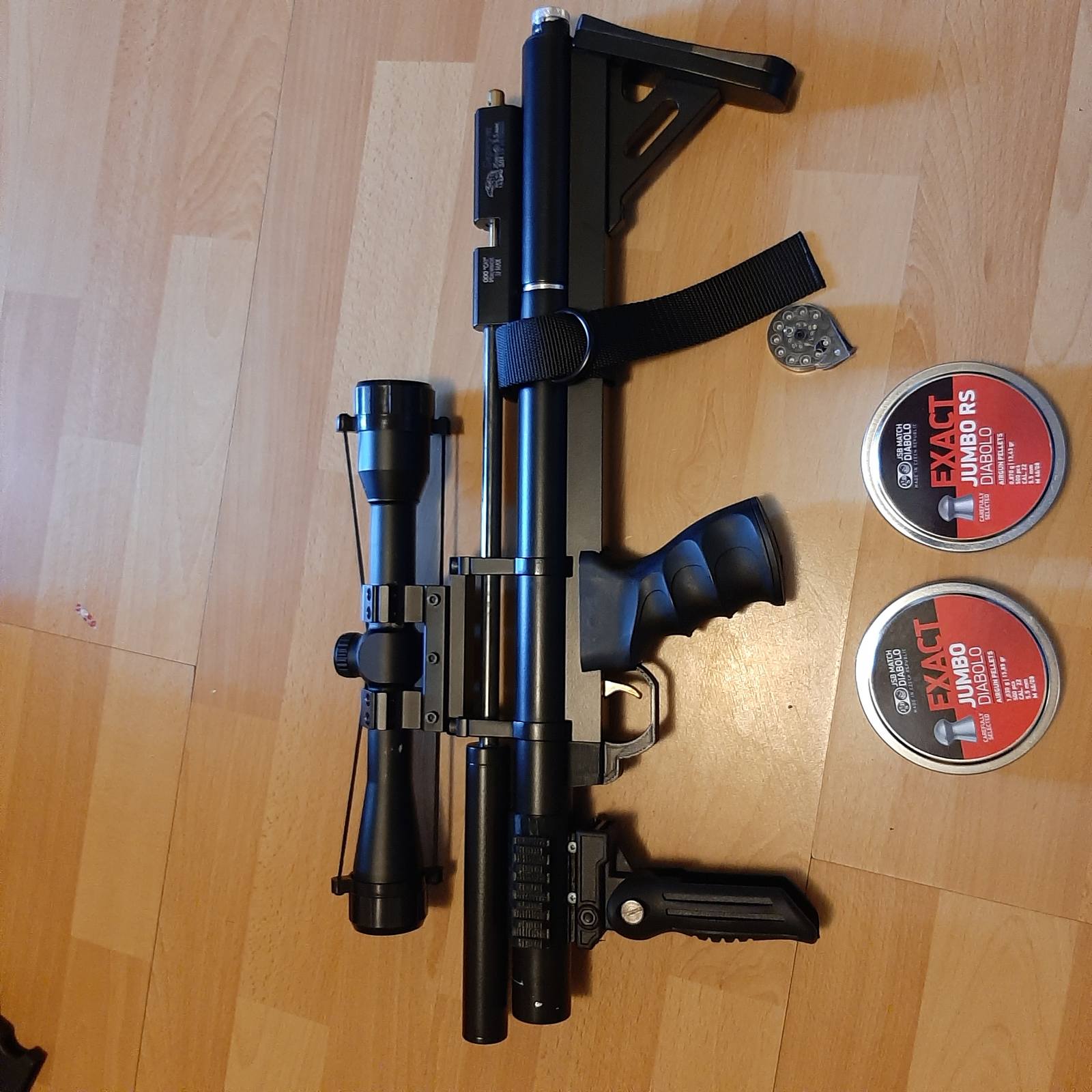 один барабанчик. Cкладная ручка на цивье . Прицел - 4x32 Stoeger. Вес пару кг, длина 56 см. Влазит в любой рюкзак. Цена за все 1155 рублей.