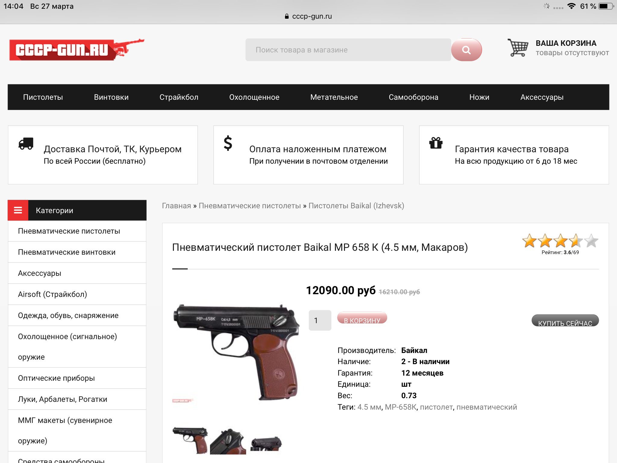 dizcor писал(а):Их уже не выпускают давно, а те что сделали- имеют нефункционирующую затворную задержку+ кучу косяков. Смотрите видео работы автоматики по ссылке выше. Цена будет скорректирована, если покажете в продаже такой-же, в РФ, ОАЭ, или где угодно