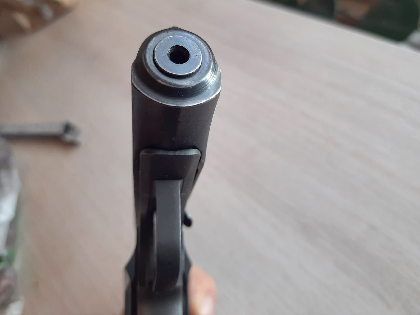 Кованый (фрезерованный) затвор, широкий ровный антиблик, овальное окно выброса. Очень ровная геометрия без заваленных граней.