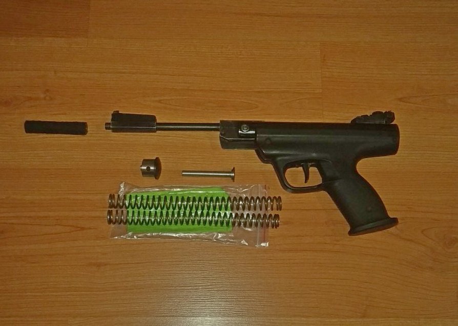 Пневматический пистолет Иж-53. Год выпуска 1997. В достойном состоянии. Установлена газовая пружина. Манжета Вадо. Металлический задник и муфта. В комплекте 2 витых пружины, металлический задник под витые пружины, утяжелитель поршня. Брался для разгона и апа. Так и не дошли руки. Новый в пластике сейчас 279 р. (для справки)