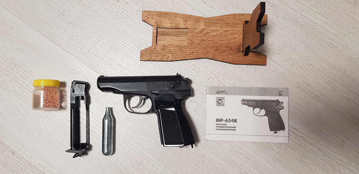 В наличии остался такой. Мр 654к полностью в исправном состоянии, резинки заменены, в комплекте коробка, ключик, шарики, баллончик, кобура. Цена комплекта 285 р. По всем вопросам 80447343135.
